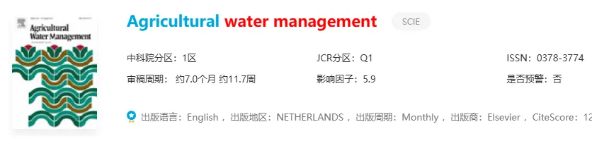 推荐理由:农业水资源领域的权威期刊,IF稳定上升!主打灌溉、排水、水资源配置这些方向,年发文量约564篇,录用率大概50%。可选混合OA,非OA模式不用交版面费,国内发文占比超56%!