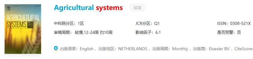 推荐理由:农业系统建模与可持续农业的权威平台!聚焦多尺度建模、资源分配、政策评估这些方向,混合OA能免APC。就是审稿周期有点长,大概12-24周,录用难度中等~