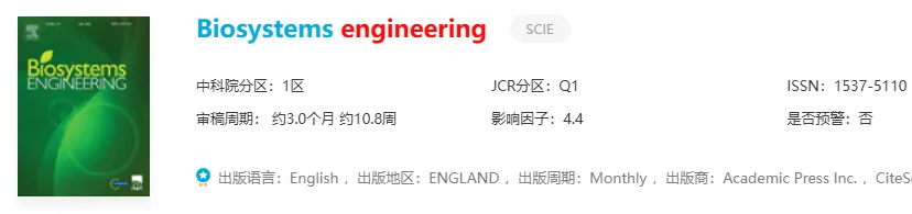 推荐理由:生物系统工程领域的重要期刊!涵盖可持续土地利用、农业机器人、传感器自动化这些方向,IF稳步上涨。年发文量约202篇,混合OA可选非OA免APC。审稿周期约3个月,速度适中,录用难度中等!