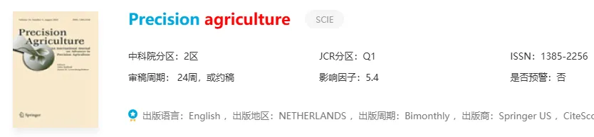 推荐理由:精准农业领域的领先期刊!IF快7了,上升趋势明显。主打遥感、GIS、智能传感、变量施肥这些方向,年发文量约89篇,非OA模式能免版面费。审稿周期2-3个月,速度在线,录用也比较容易!