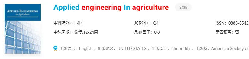 推荐理由:ASABE旗下的SCIE期刊,主打农业工程实践应用!收农机测试、灌溉设备、保护性耕作装备这些方向的研究,要求有实用经验和试验结果,方便别人直接应用。年发文量约61篇,非OA无APC,完全免费!审稿周期12-24周稍长,但录用难度低!