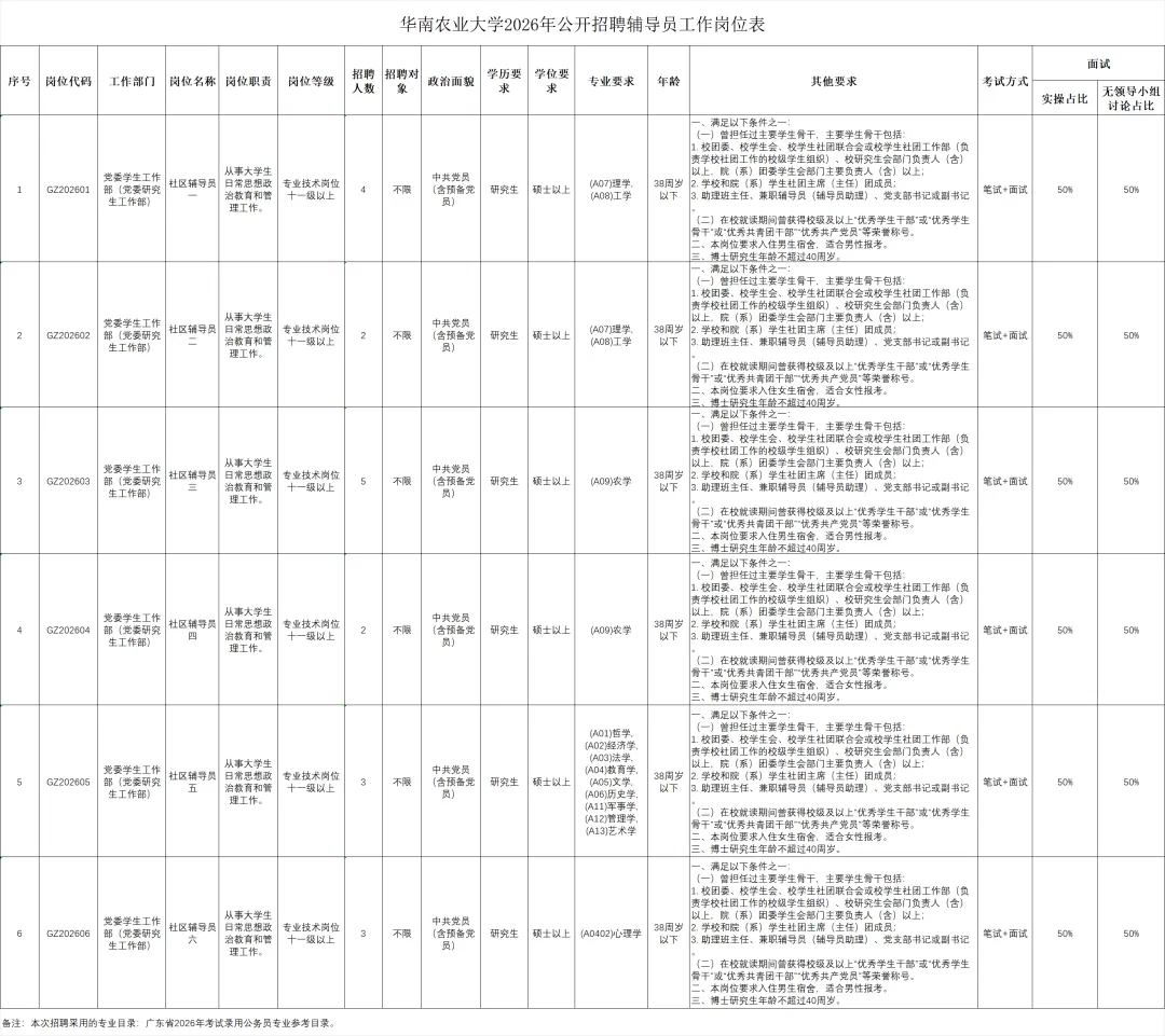 附件1:附件1华南农业大学2026年公开招聘辅导员工作岗位表.xls