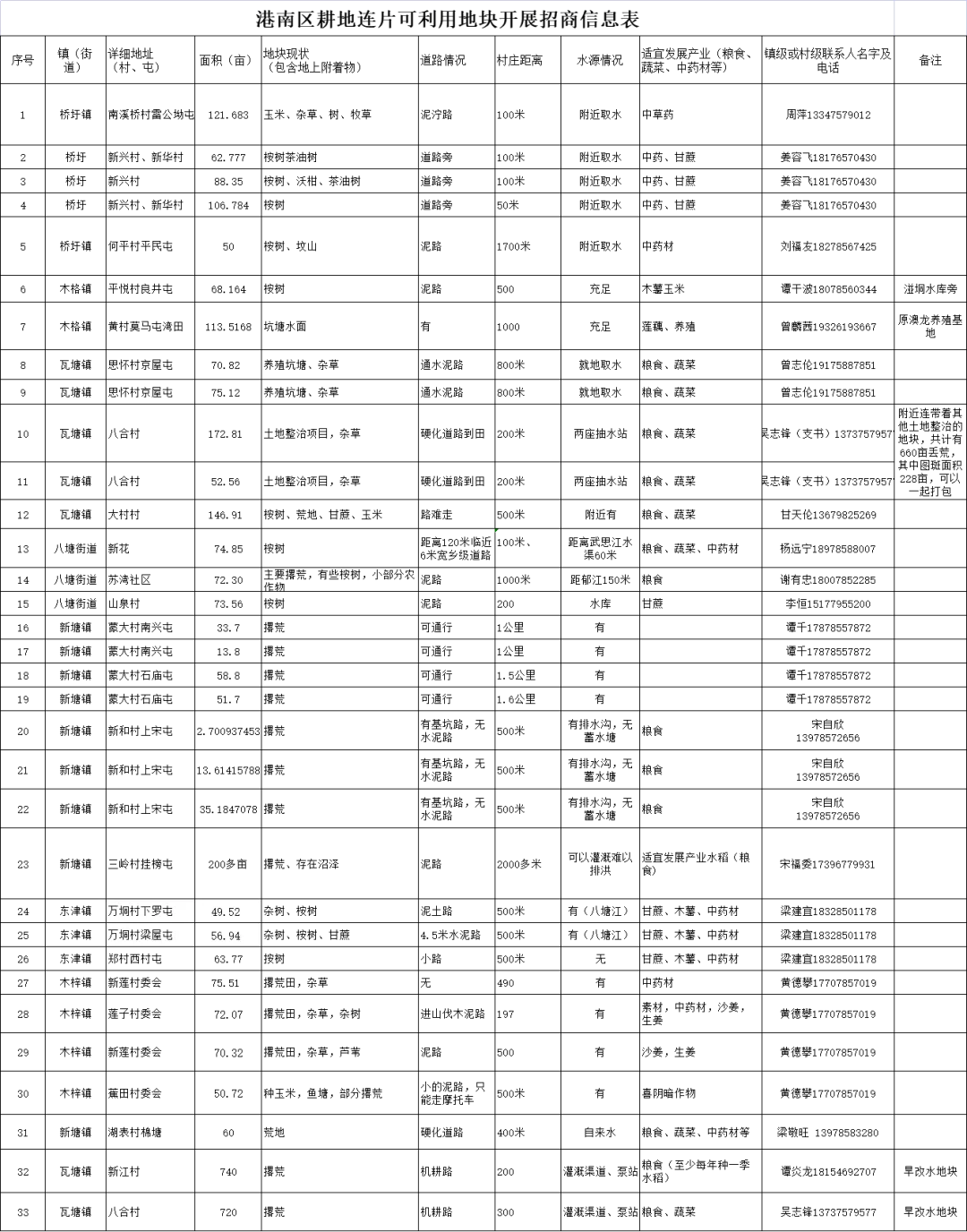 为深入推进港南区农业现代化建设,盘活优质农业产业用地资源,聚焦农作物种植业高质量发展,诚邀全国各类农业经营主体、种植企业、专业合作社及种植大户前来投资兴业,共促港南农业产业提质增效,助力乡村全面振兴。现将招商事宜公告如下: