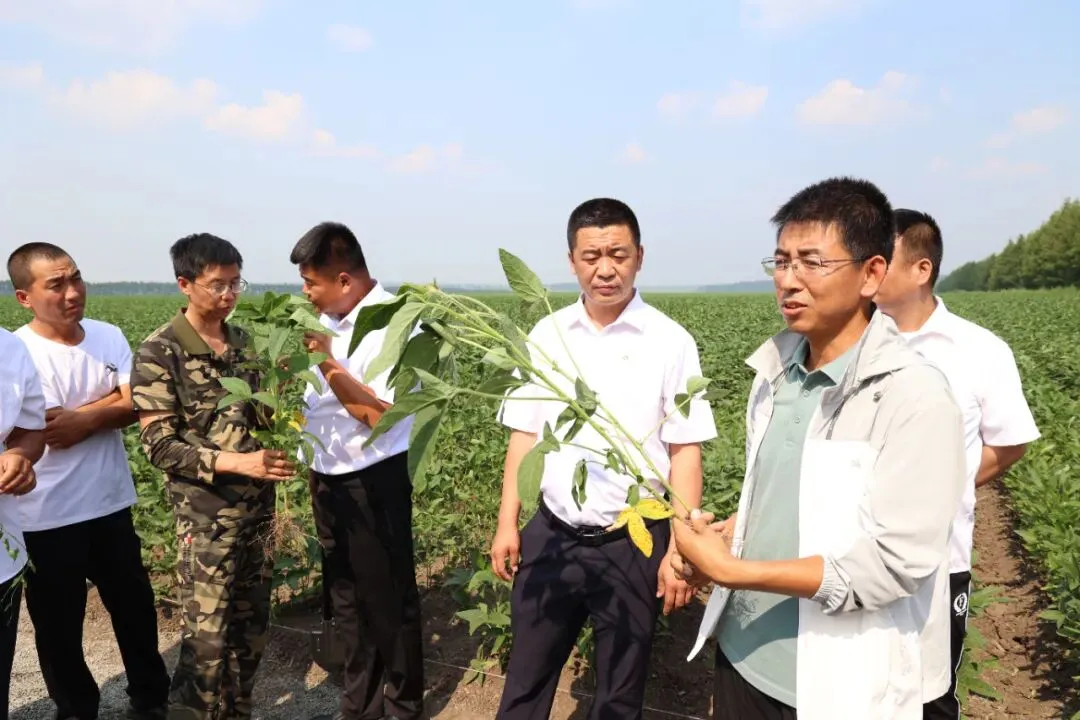 两位教授就长水河农场有限公司当前作物长势进行针对性分析,从气象因素影响到作物各时期生长优势表现,及提高作物性状的药肥应用、病虫的防与治方向进行详细讲解,并对下一步的精细化田间管理提出建设性的指导建议。