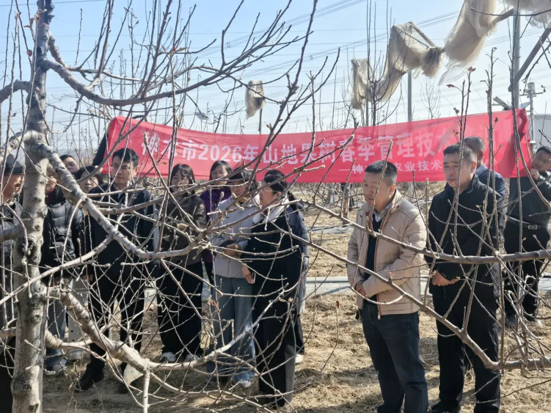 春管正当时,技术送田间。近日,神木市农业技术推广中心邀请延安果业中心高级农艺师刘光东,在迎宾街道关崖窑村果园开展山地果树春季管理技术培训,全市30余名果农及农技人员参加培训。