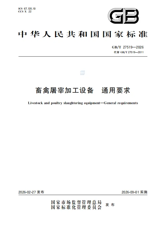 新版国标聚焦畜禽屠宰加工设备设计规范、材料安全、卫生要求、装配安装、性能检验等核心环节,全面提升设备卫生性、安全性与可靠性,为全国屠宰加工企业提供统一权威的技术指引,推动行业向自动化、智能化、绿色化转型升级。