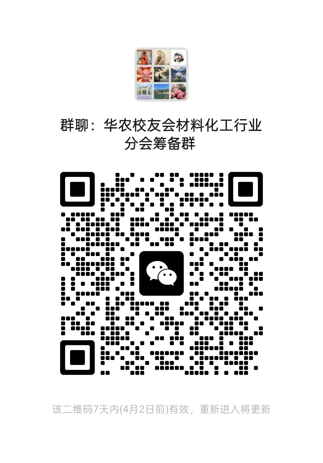 (二)欢迎扫码加入“华农校友会材料化工行业分会筹备群”,与各位校友、行业同仁互动交流,共商分会发展。