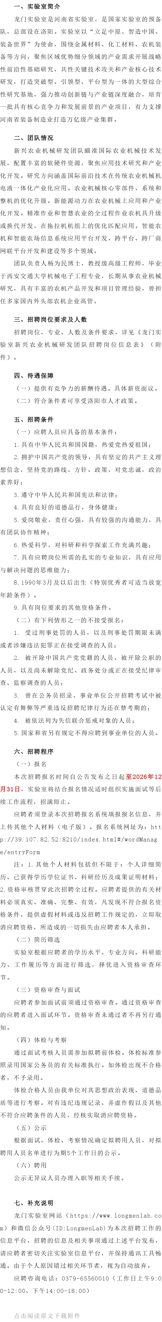 >龙门实验室新兴农业机械研发团队2026年度招聘公告