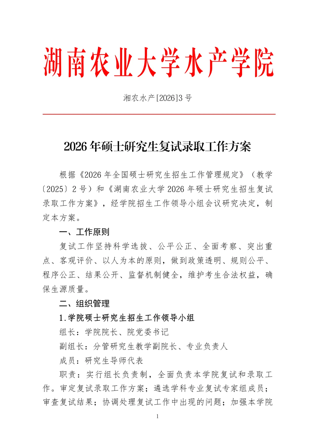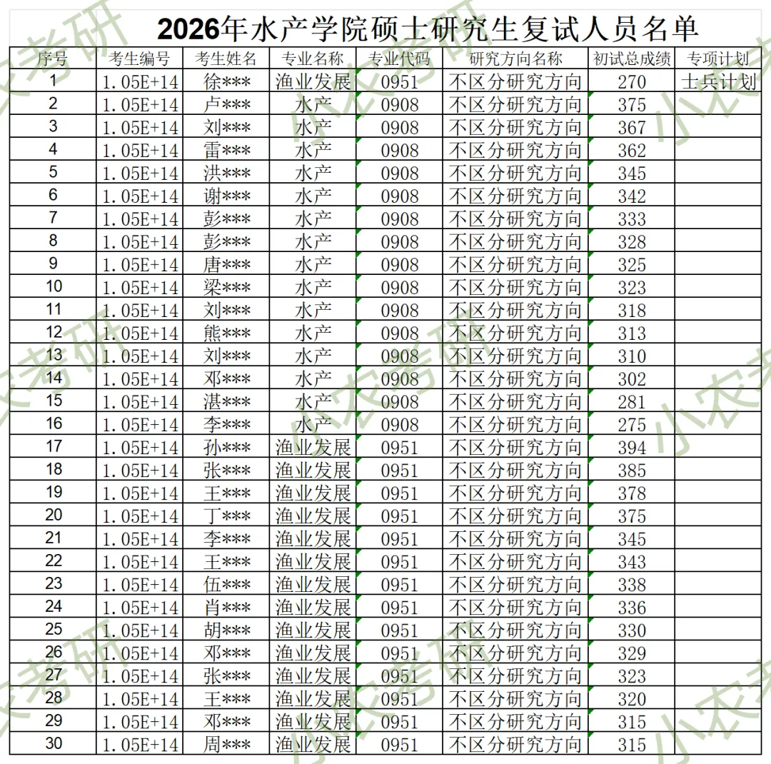 >2026年湖南农业大学考研水产学院复试录取工作方案与名单