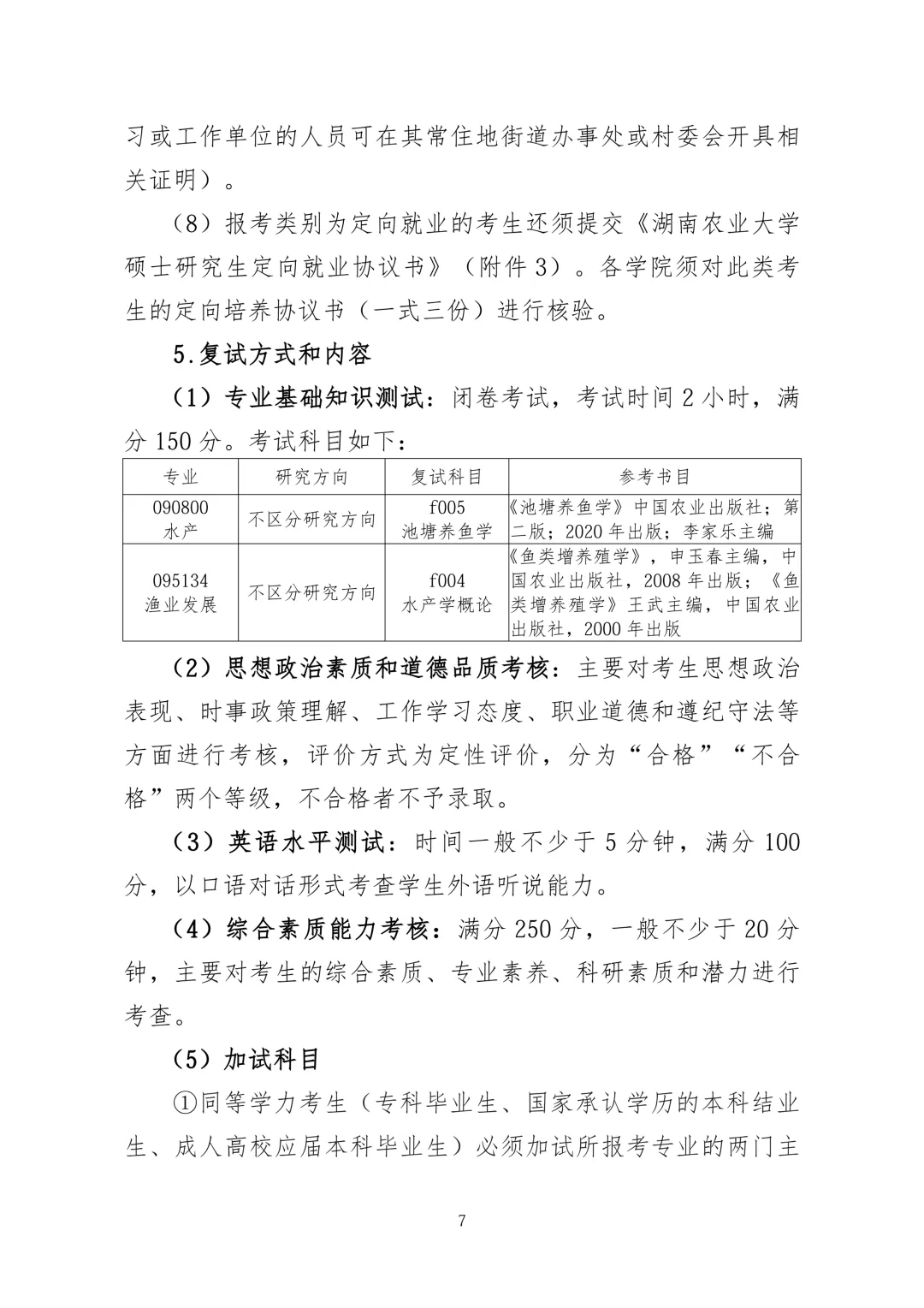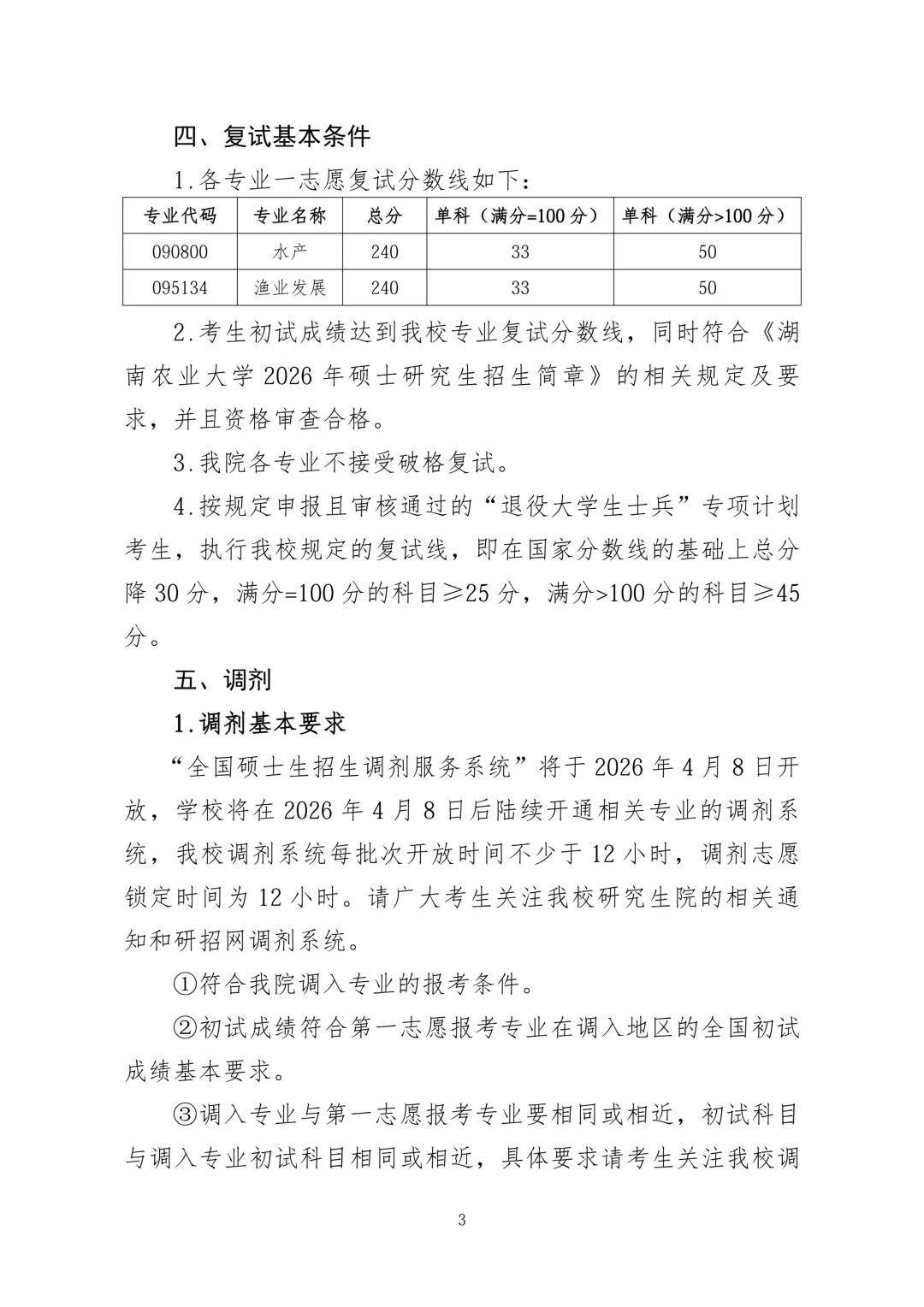 2026年湖南农业大学考研水产学院复试录取工作方案与名单