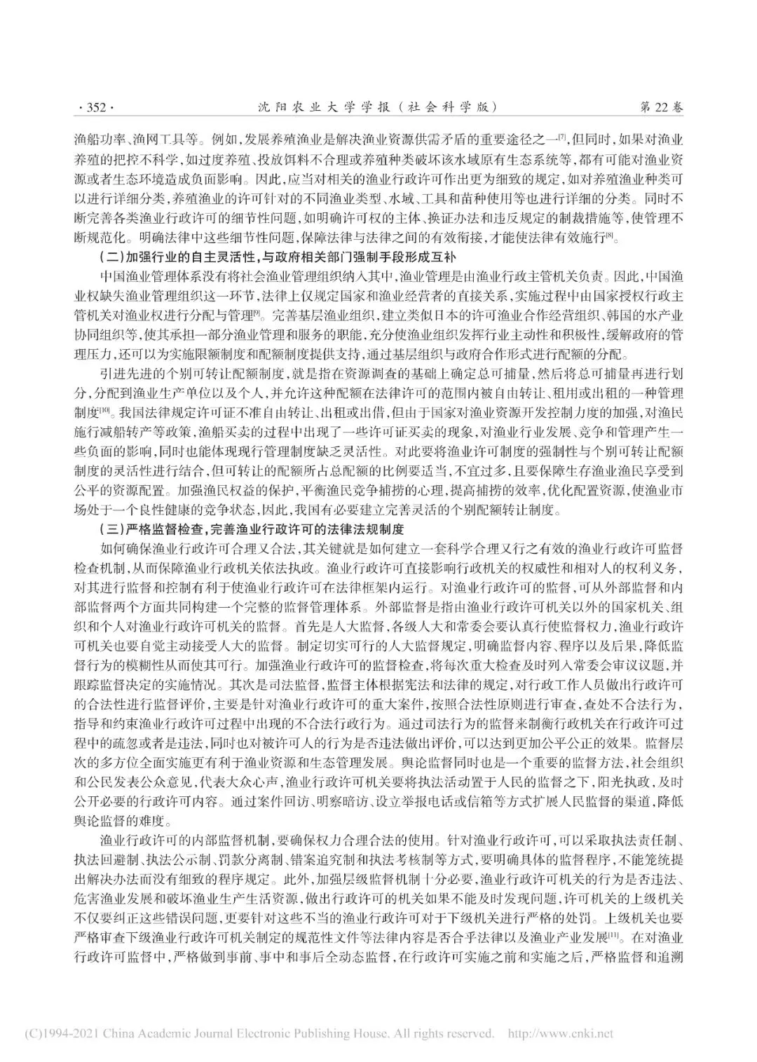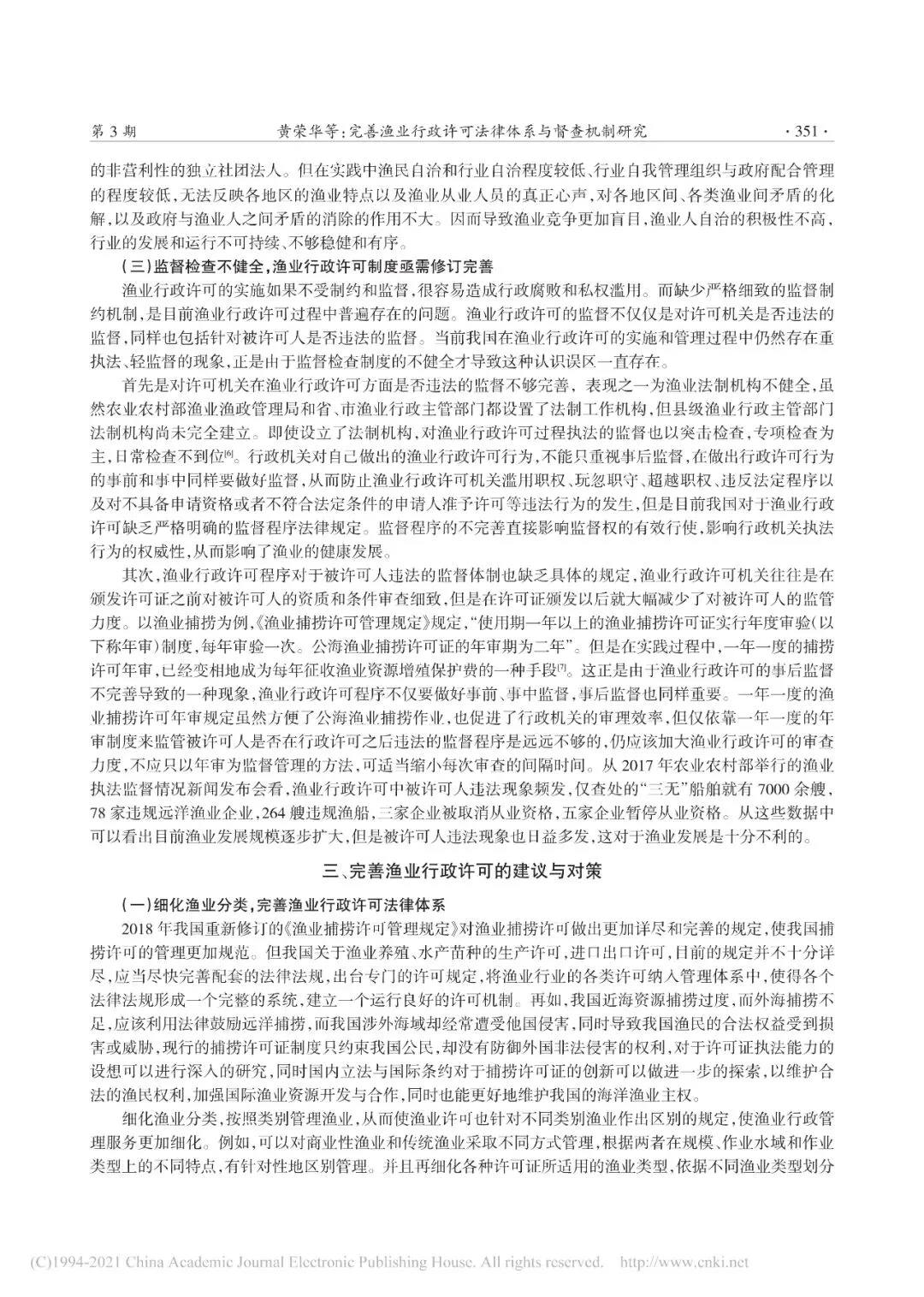 行政许可既是行政机关的一项重要行政权力,同时也是一种关系公民、法人或者其他组织权益的重要具体行政行为。行政许可既关乎公共利益的维护,又兼顾私人利益的保障,是公共利益和私人利益之间的协调器,能够有效调节社会关系,规范行业行为。因此,行政许可被广泛运用于社会管理的各个领域,而渔业行政许可同样是在渔业开发行政管理中的重要行政手段。渔业行政许可在渔业资源的保护、渔业生产者合法权益的保障,以及渔业生产发展的促进方面扮演重要的角色,因此正确理解与适用,并不断完善渔业行政许可具有重要的现实意义。探究渔业行政许可在现实中存在的主要问题包括实践易生矛盾,渔业行政许可法律体系不完善;行业缺乏自律,渔业行政许可管理比较僵硬;监督检查不健全,渔业行政许可制度亟需修订完善。因此,完善渔业行政许可法律体系与督查机制必须细化渔业分类,完善渔业行政许可法律体系;加强行业的自主灵活性,与政府相关部门强制手段形成互补;严格监督检查,完善渔业行政许可的法律法规制度。