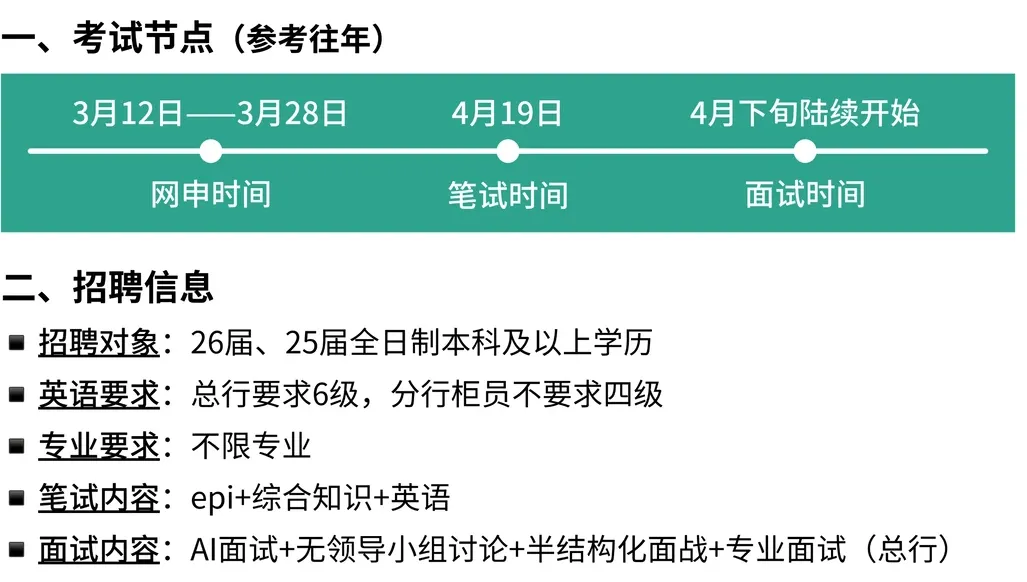 ▫️面试内容:AI面试+无领导小组讨论+半结构化面试(总行加试专业面试)