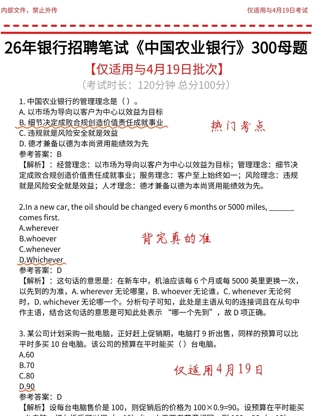 26 4.19农业银行春招笔试丨26 4.19农业银行春招笔试直接背!26 4.19银行春招笔试备考资料包+刷题APP