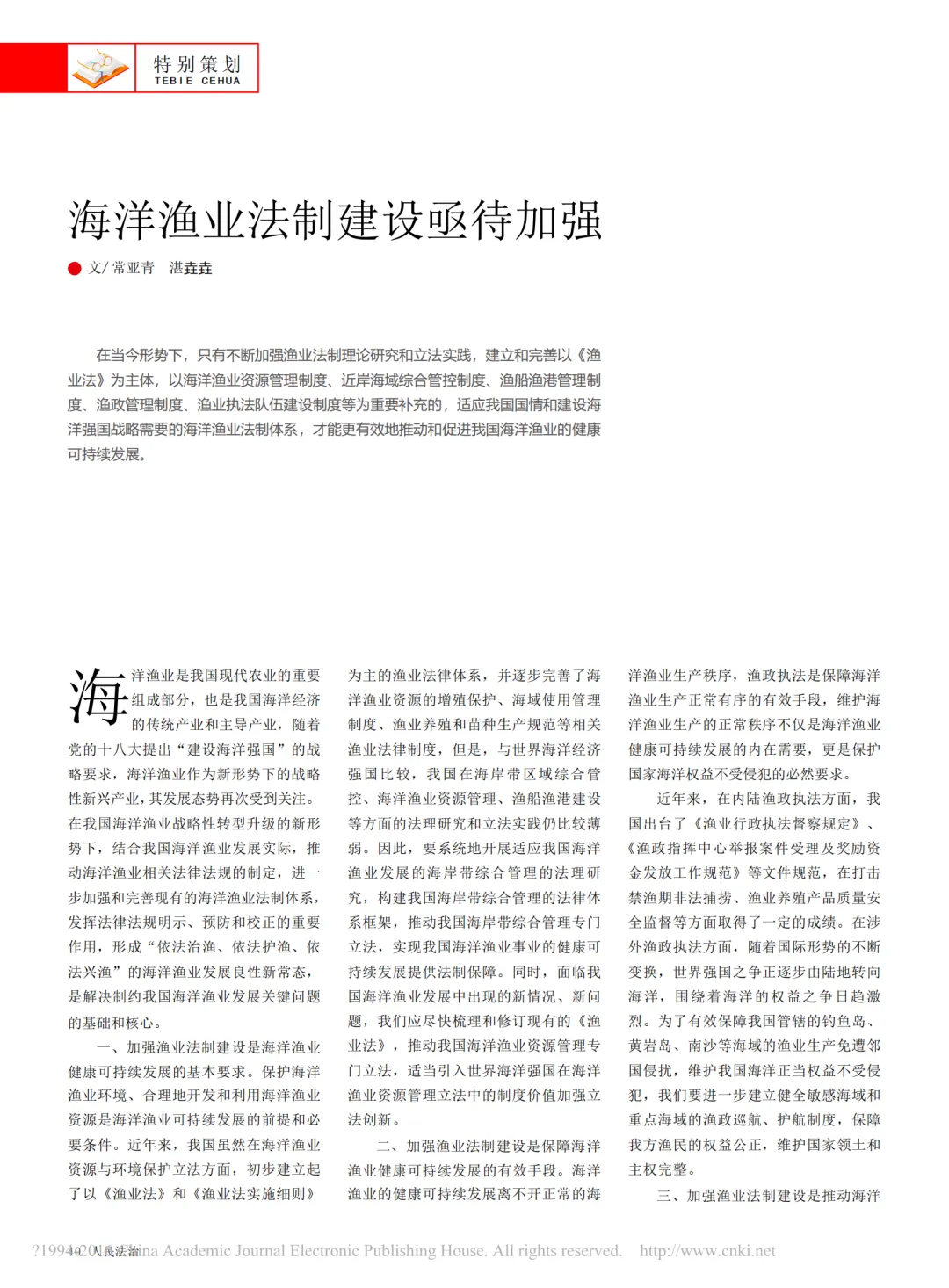 海洋渔业法制建设亟待加强