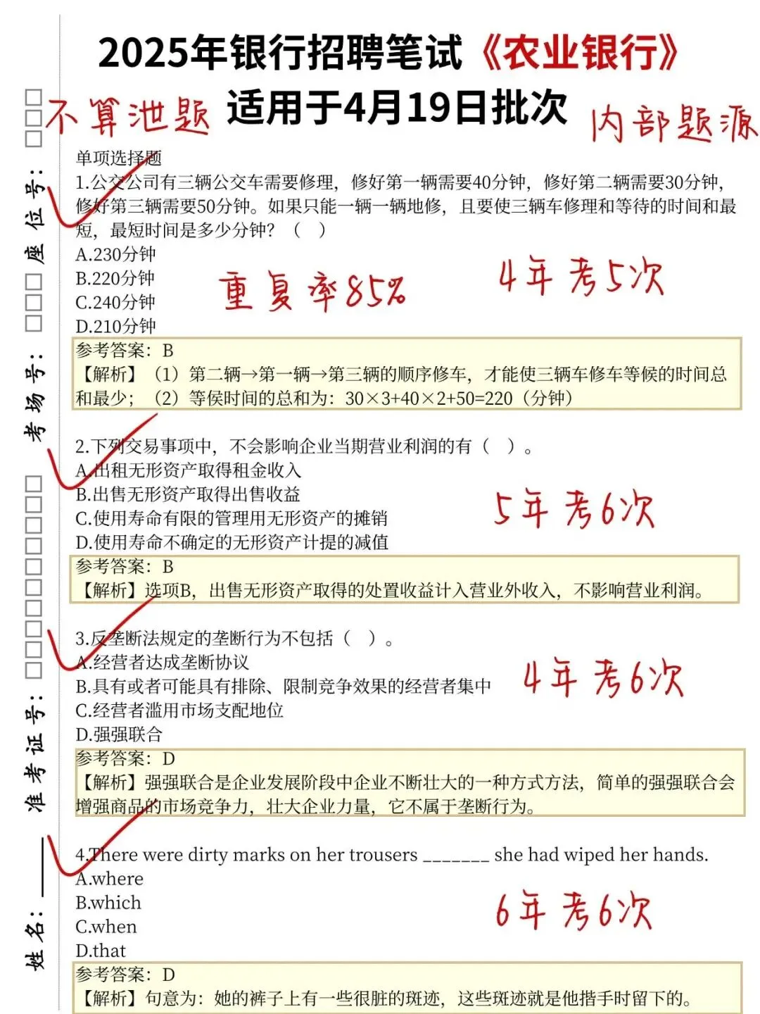 >26农行春招,无非这10页纸,7天背完保底88