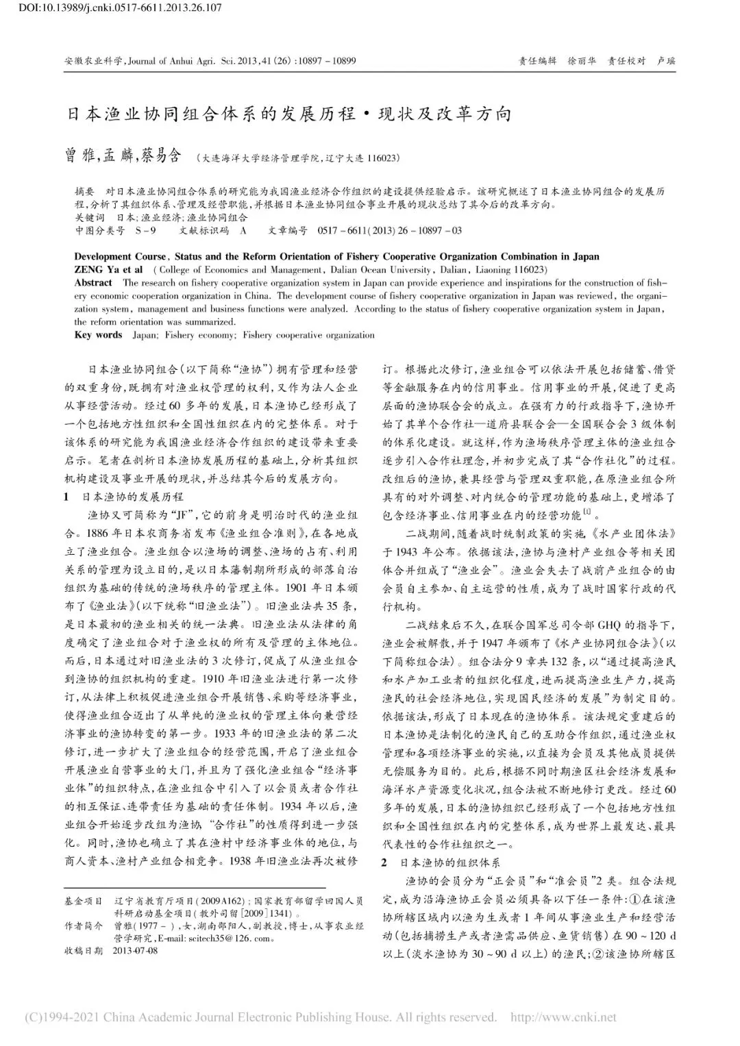 日本;渔业经济;渔业协同组合