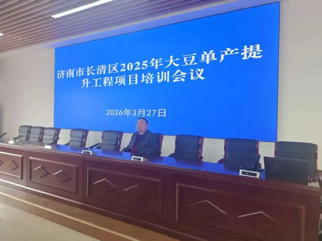 为进一步提升种粮大户水肥一体化设备操作技能与大豆玉米带状复合种植技术水平,3月27日,区农业农村局召开济南市长清区2025年大豆单产提升工程项目培训会议。区农业农村局有关领导,山东农业大学张俊鹏教授、宗睿副教授,相关科室负责人,平安街道、孝里街道、归德街道、文昌街道分管领导,农技站长及种粮大户代表参加会议。