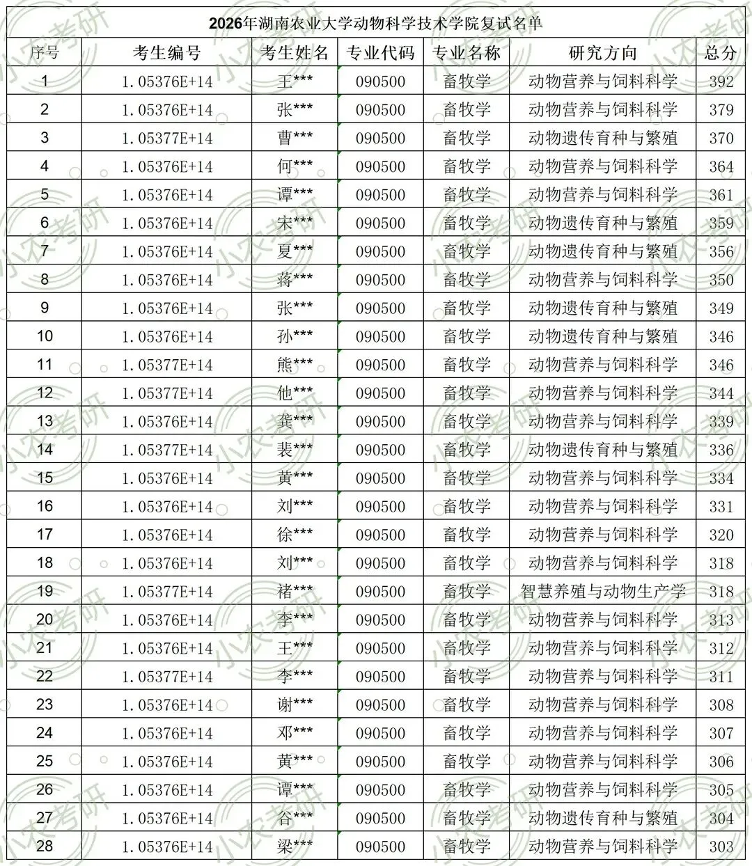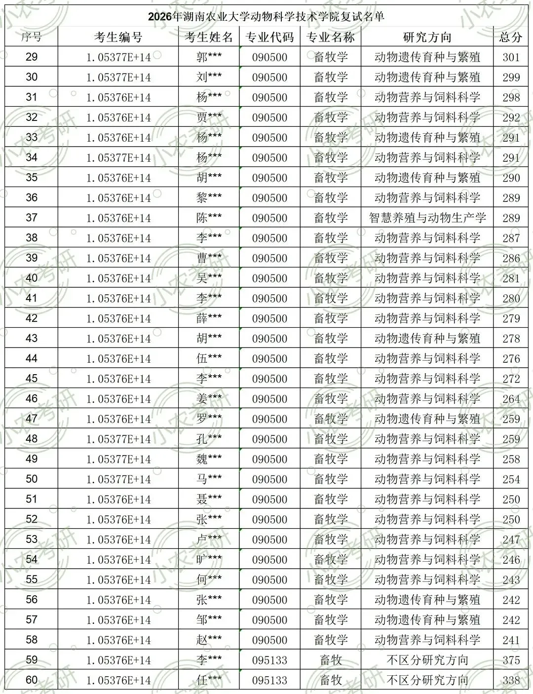 3月29日 9:00-11:00 | 十教南425、427、429 | (095133) 畜牧(含全日制和非全日制) | 专业笔试 | 具体安排见院官网通知或微信群 |