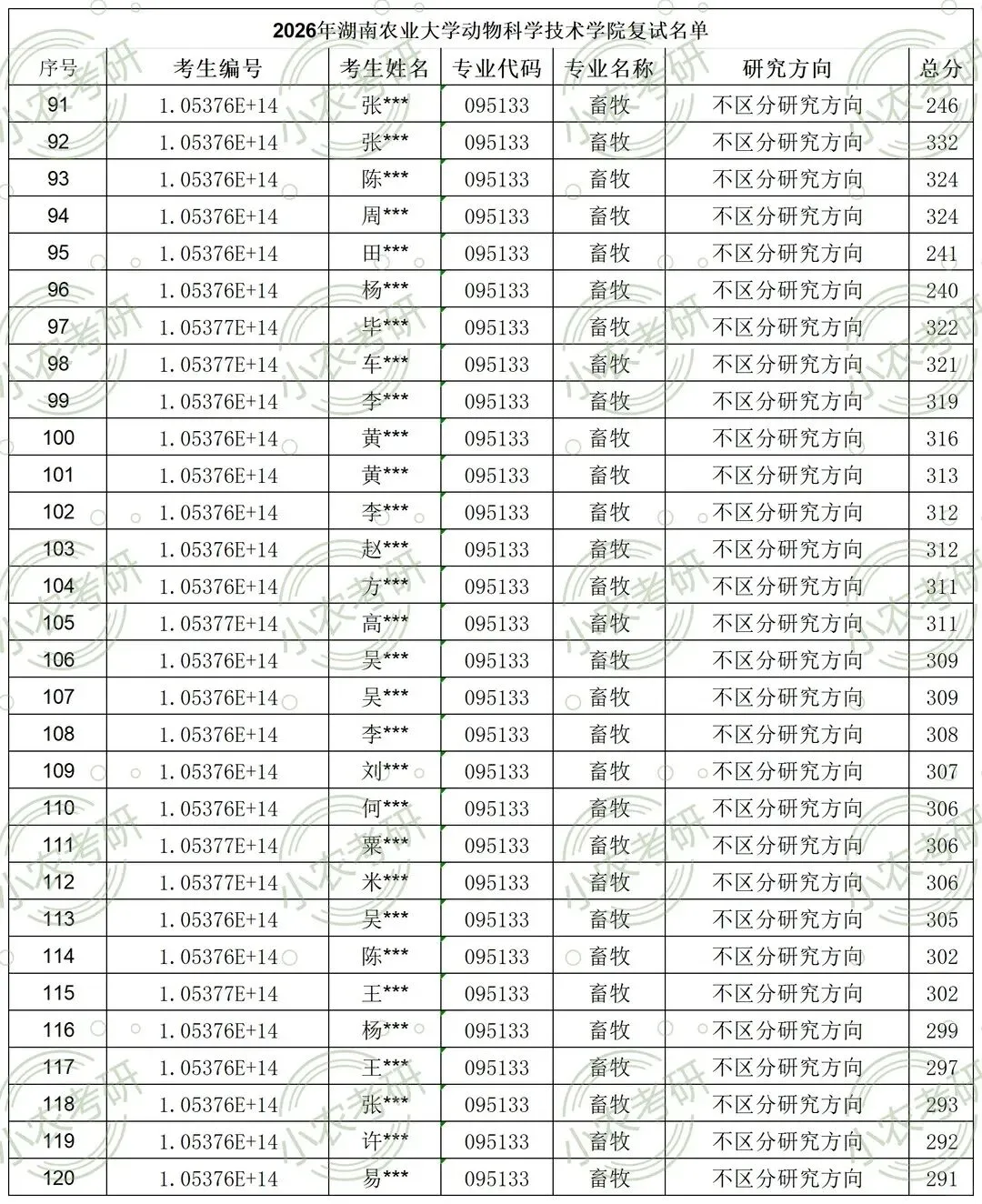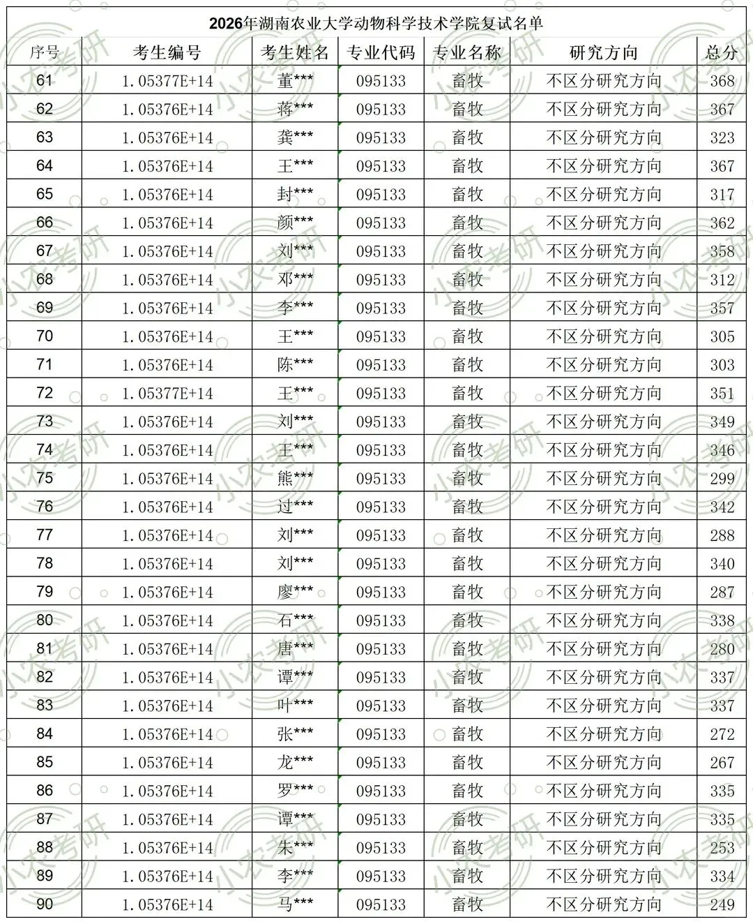 3..考生初试成绩达到我校专业复试分数线,同时符合《湖南农业大学2026年硕士研究生招生简章》的相关规定及要求,并且资格审查合格。