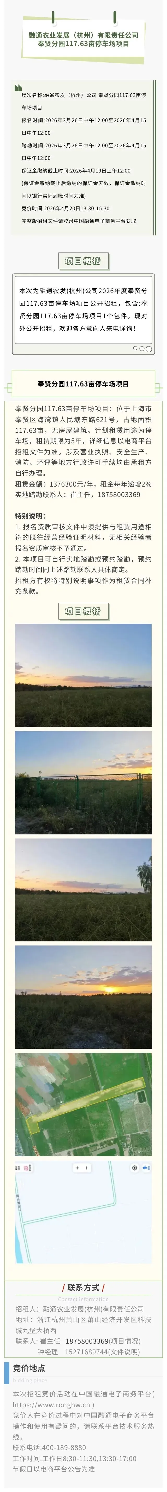 >融通农业发展(杭州)有限责任公司 奉贤分园117.63亩停车场项目