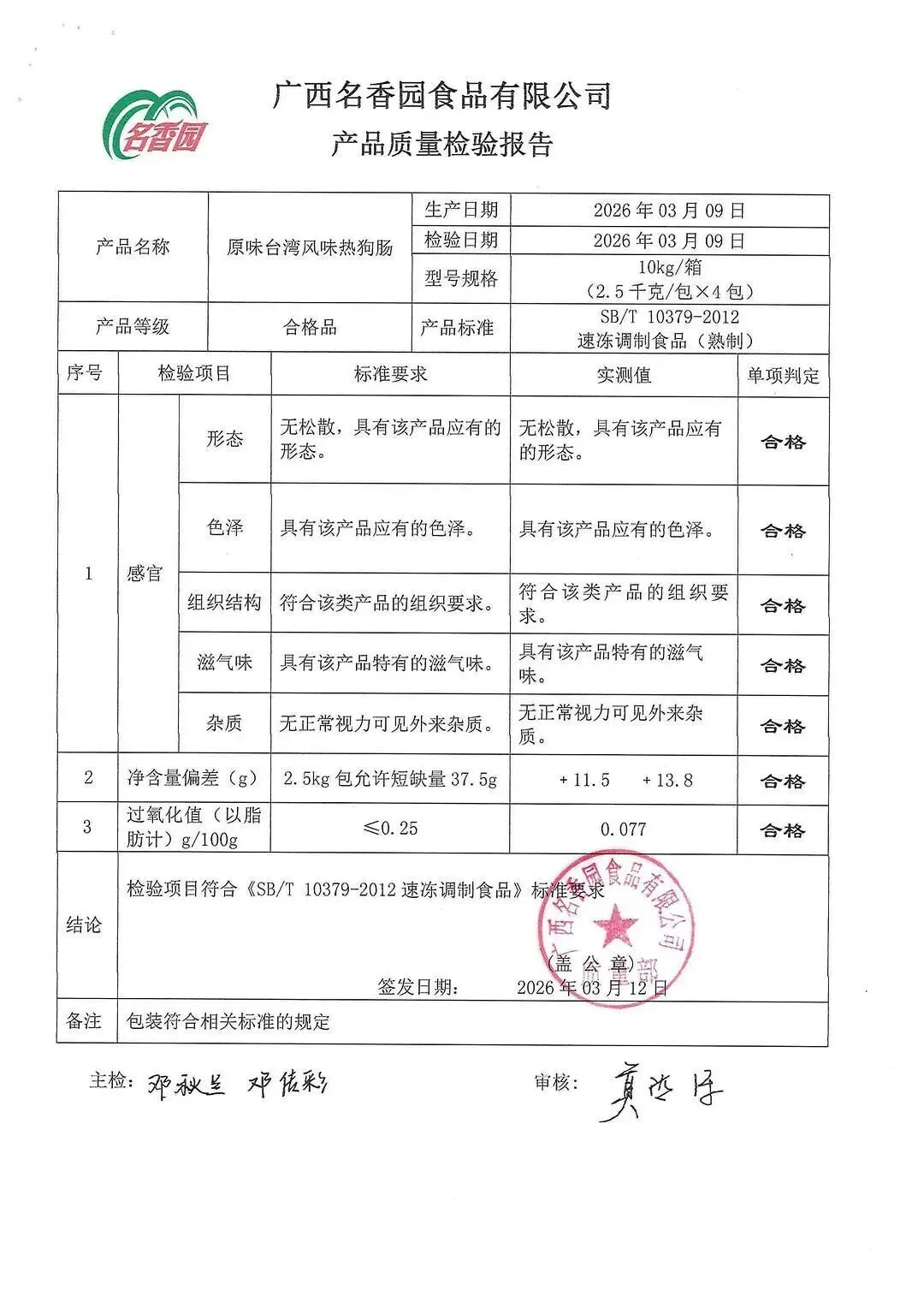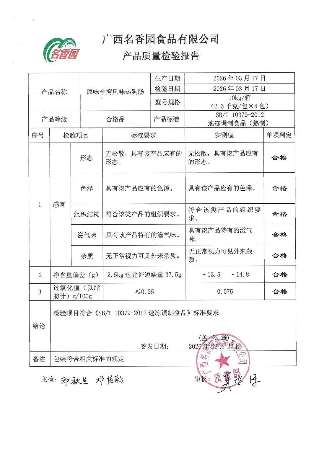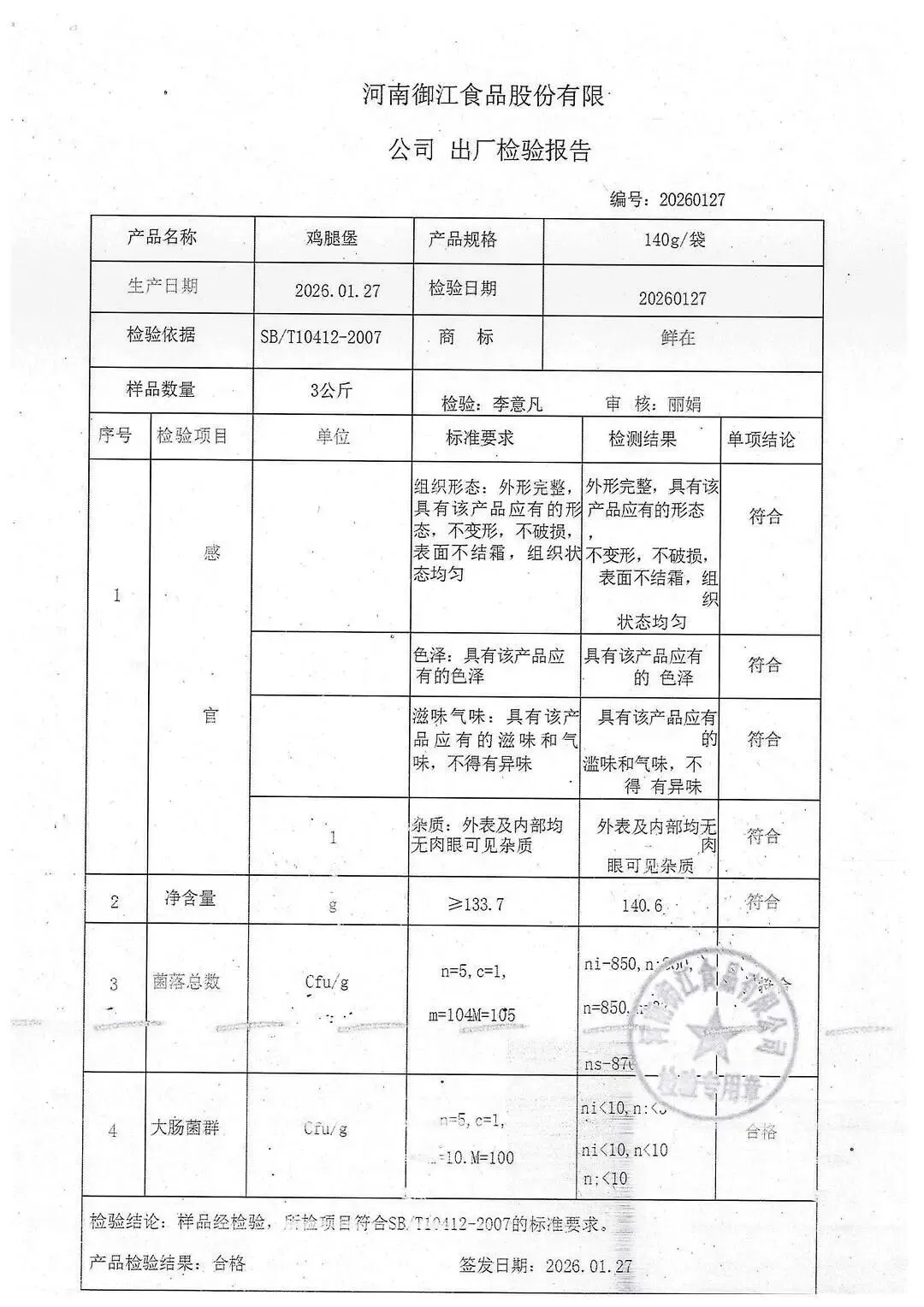>金浦供应链&禾美农业-03月28日冻品、水饺、丸子、热狗、腊肠检测报告