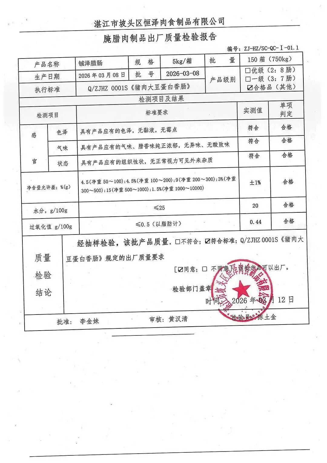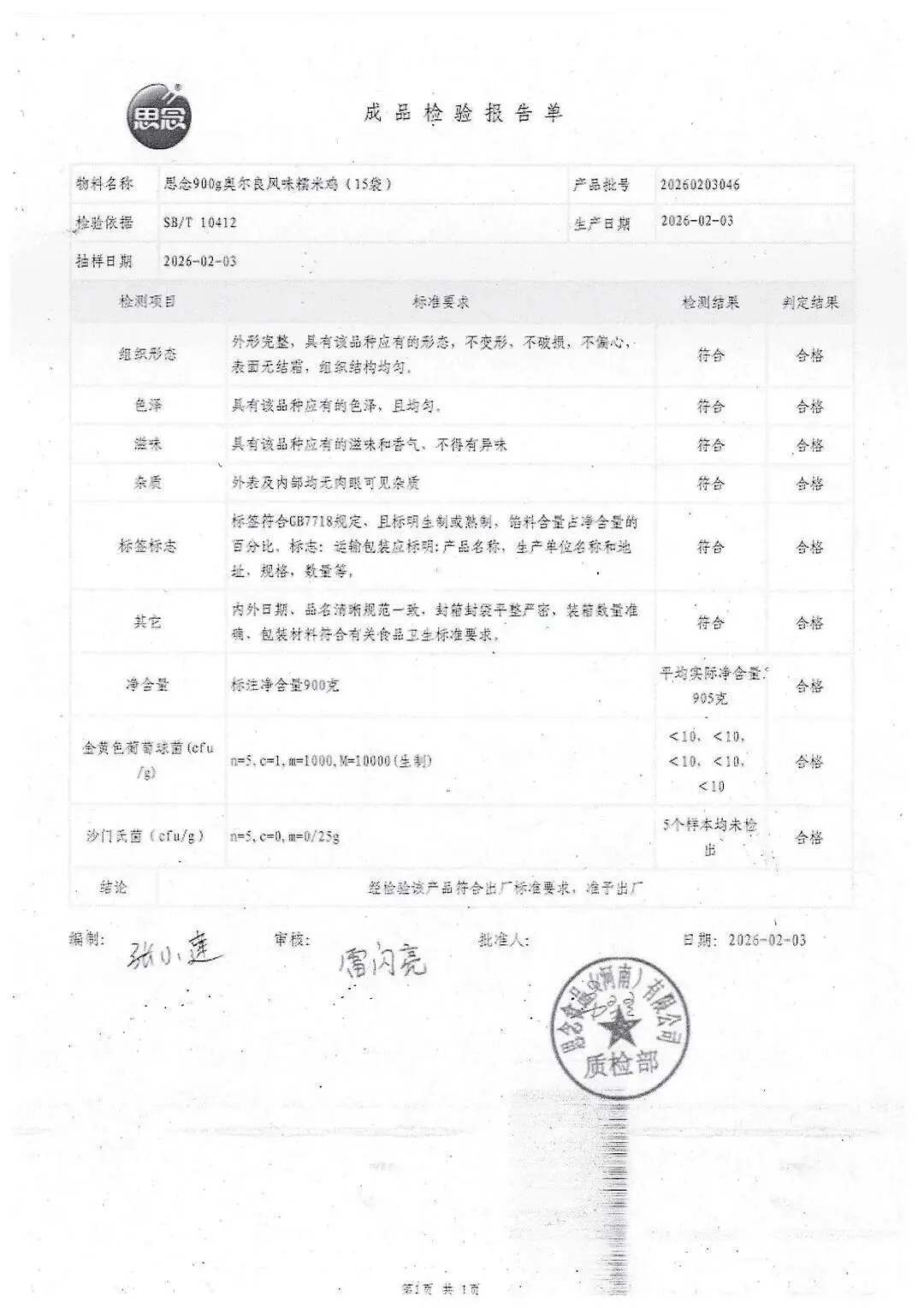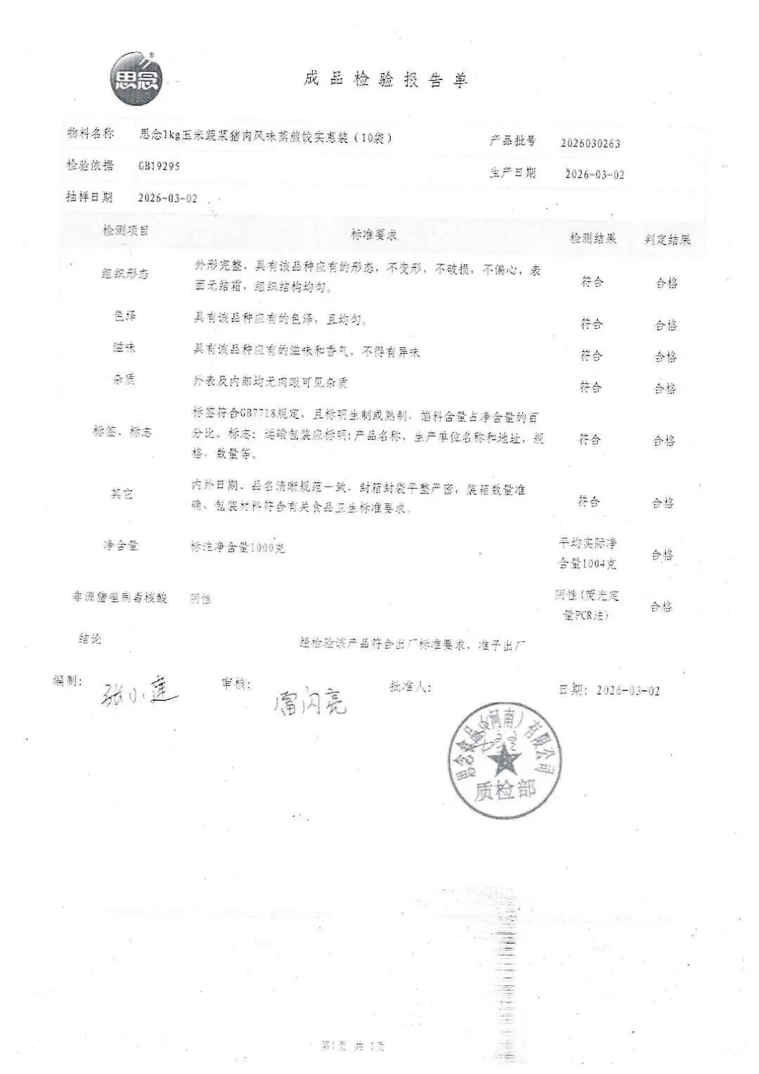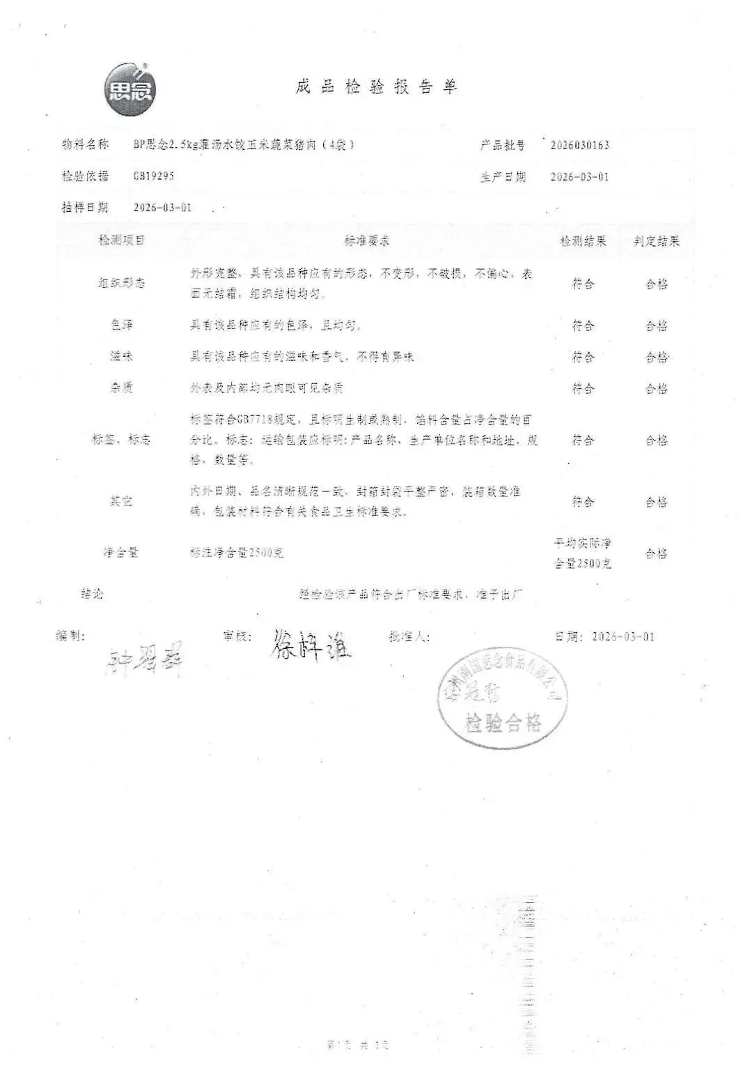 >金浦供应链&禾美农业-03月28日冻品、水饺、丸子、热狗、腊肠检测报告