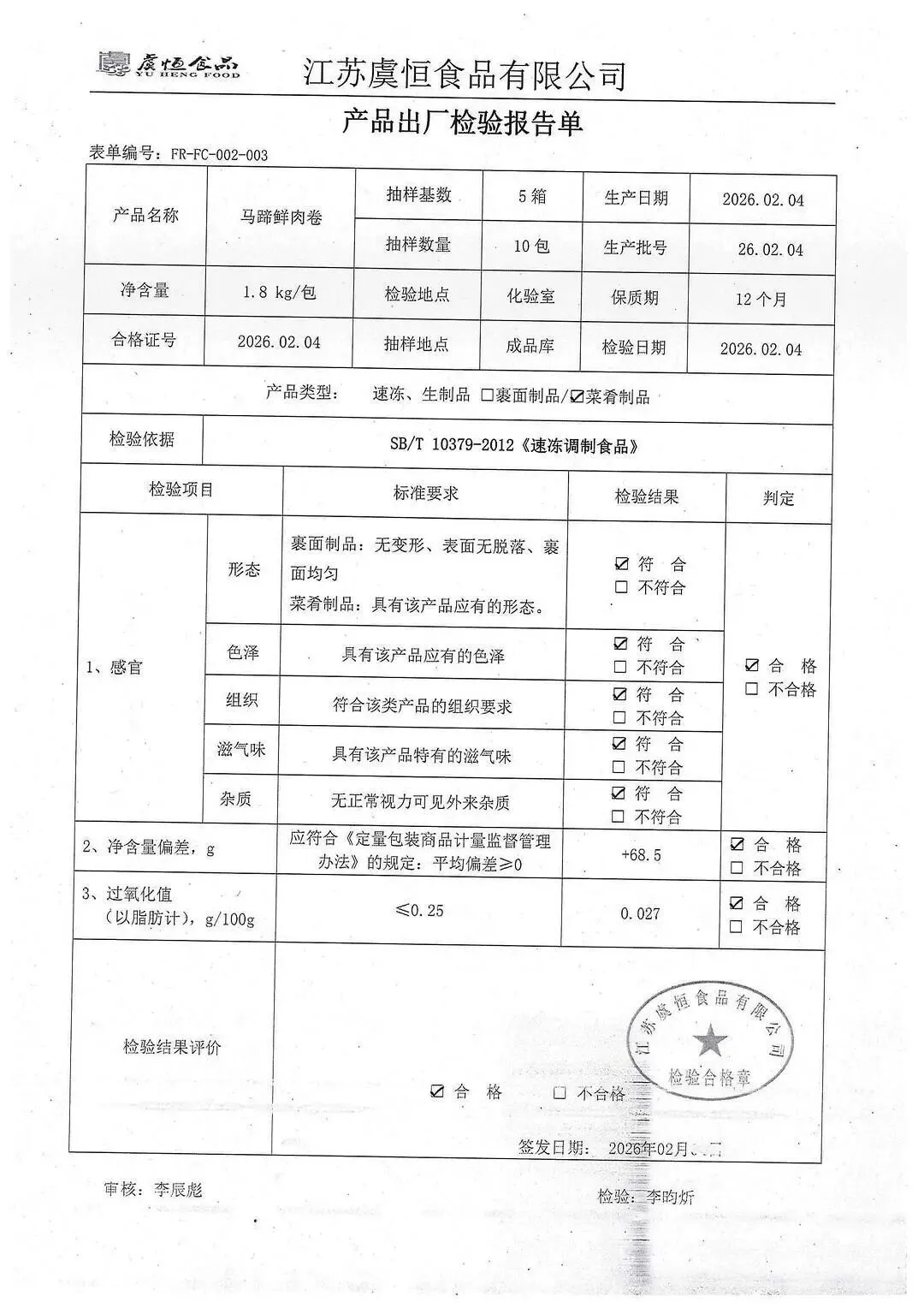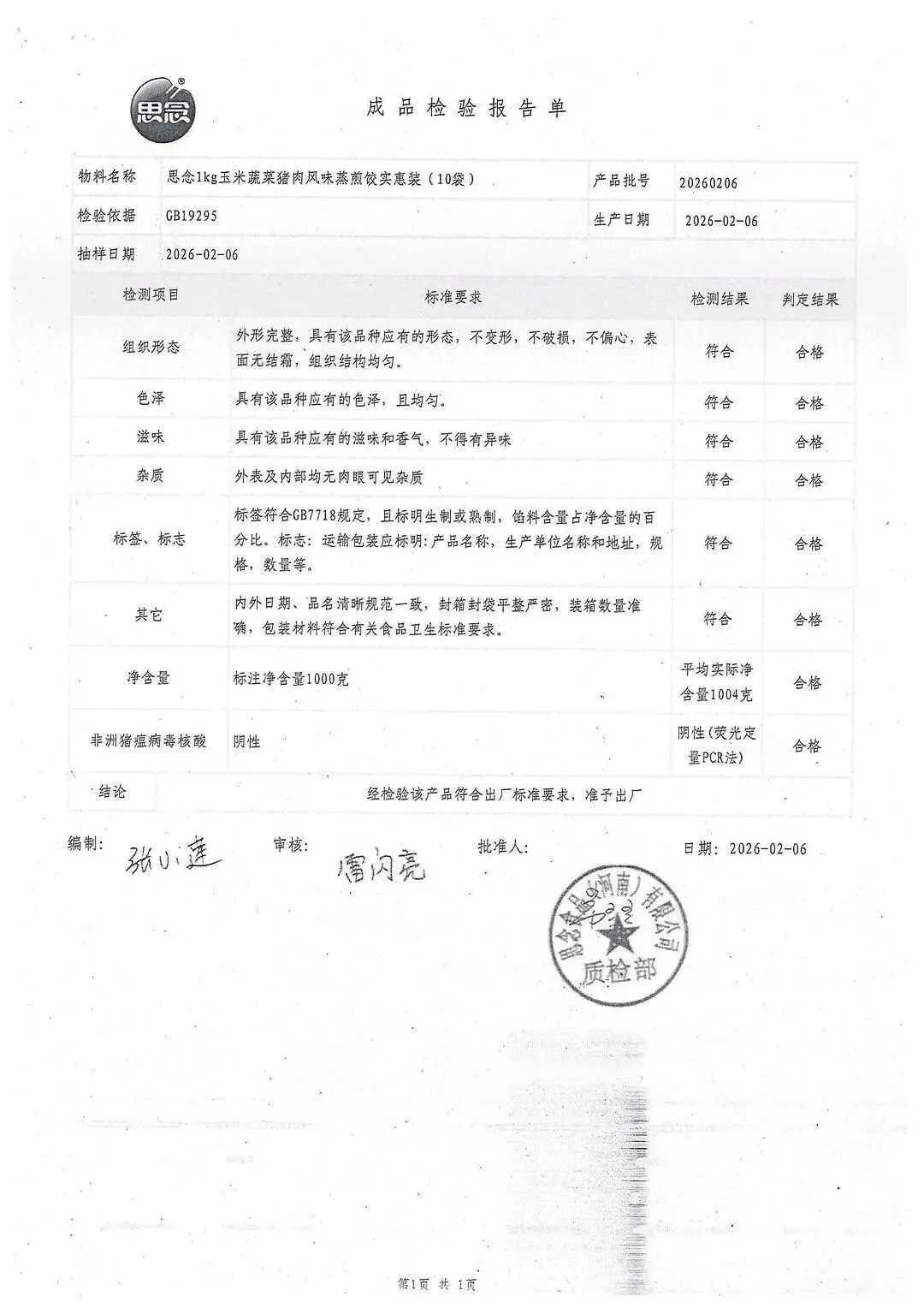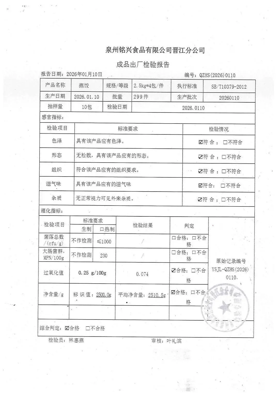 冻品、水饺、丸子、热狗、腊肠检测报告