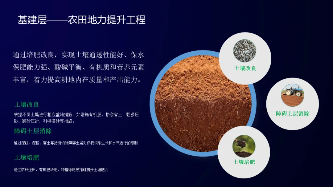 通过土壤改良、障碍土层消除、土壤培肥等行动,将土壤改良,贫土变肥,荒废土地,变废为宝,提升作物产出。