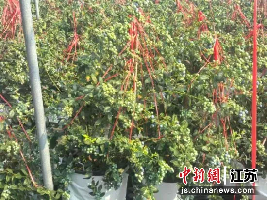 中新网江苏新闻3月25日电(徐春艳 李辉)目前,沛县朱寨镇尊农小浆果(蓝莓)研究基地的6万株蓝莓陆续进入成熟和采收阶段。基地负责人徐思东介绍,为保障蓝莓品质,基地全面推行现代农业生产模式,集成应用基质无土栽培、智能温控、水肥一体化等多项技术,精准调控棚内温湿度与养分供给,蓝莓亩产值可突破8万元。