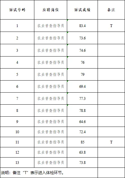 宿迁市宿城区统计局农业普查指导员面试成绩及进入体检人员名单