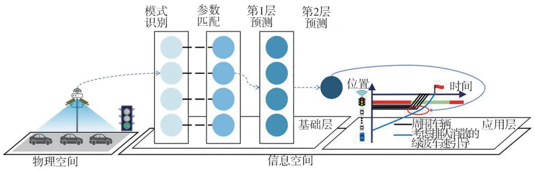 1. IVCPS跨层预测框架构建:针对排队消散时间预测与IVCPS架构的融合需求,设计了嵌入信息空间基础层的PRISM模型框架,形成"物理空间多源感知—信息空间模式识别与集成预测—应用层绿波车速引导"的闭环流程,实现感知、识别、预测、控制的全链路协同。