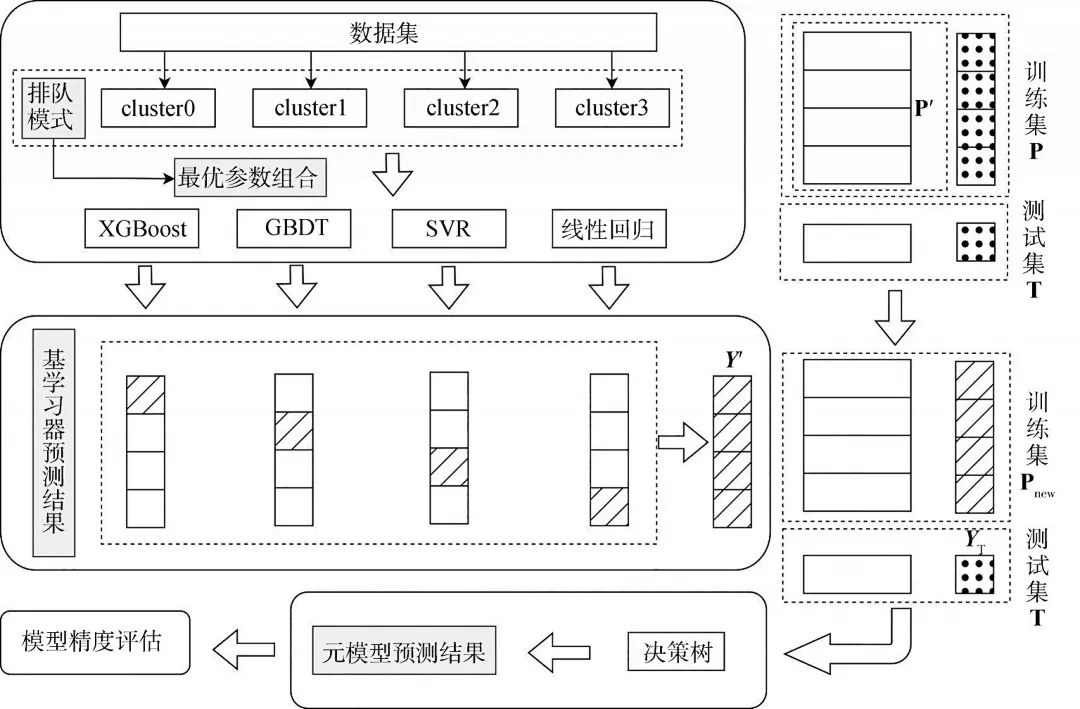 3. 异构学习器集成与参数优化:针对单一模型难以兼顾多模式预测精度的问题,构建由XGBoost、GBDT、SVR等异构学习器组成的双层堆叠泛化模型,通过贝叶斯优化为不同排队模式匹配最优超参数组合,充分发挥各基学习器在不同模式下的互补优势。