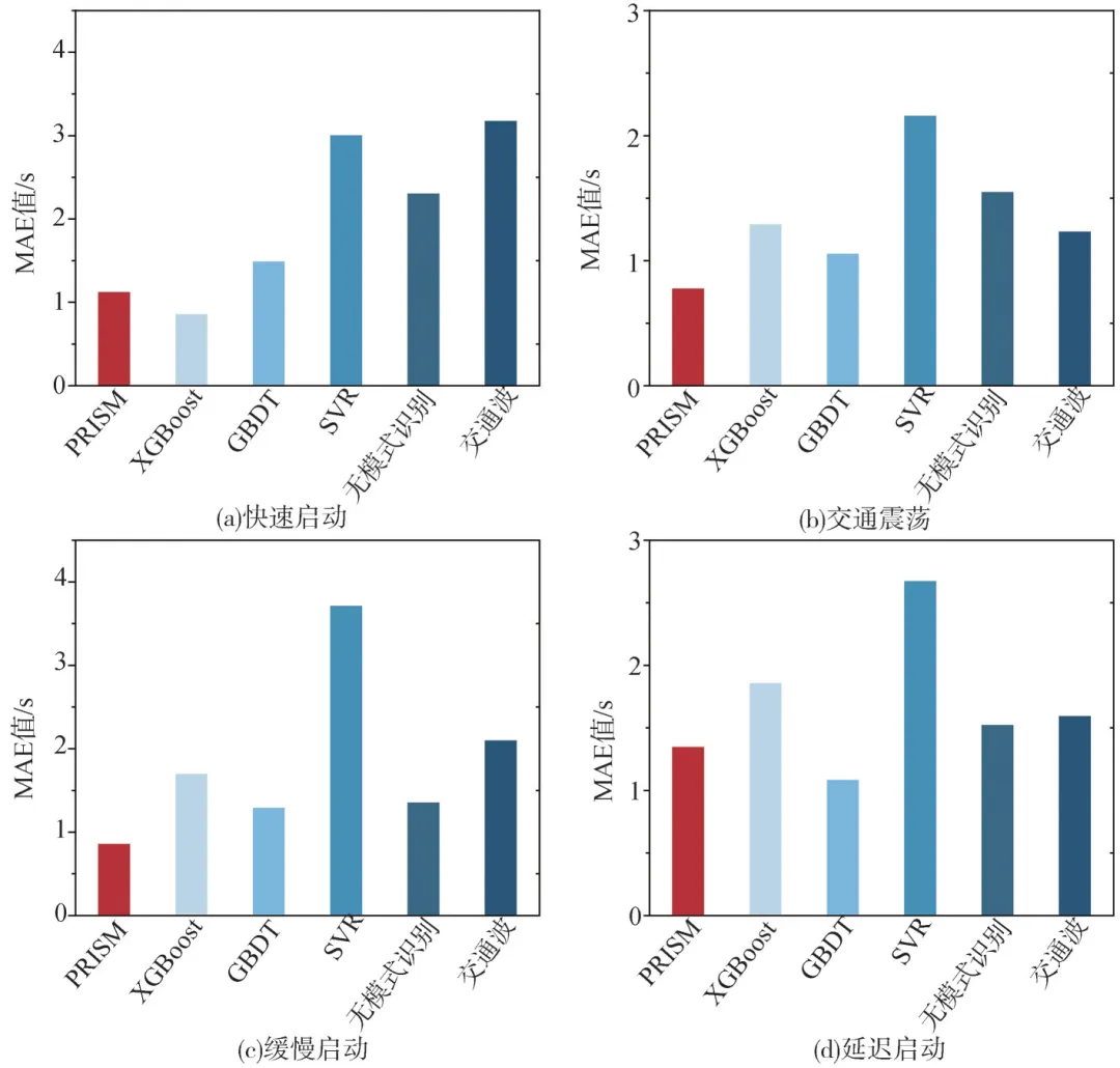 1. 在天津市4个真实信号交叉口的验证集上进行测试,PRISM模型的总体平均绝对百分比误差(MAPE)为7.82%,平均绝对误差(MAE)为1.00s,单样本预测耗时平均为3.6ms,满足实时性要求。