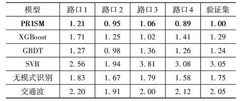 表2 验证集中各路口各模型下预测结果的MAE值