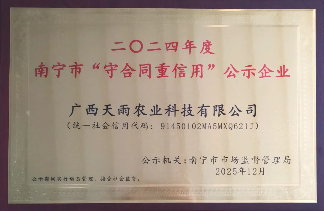 未来,广西天雨农业科技有限公司将以这份荣誉为新起点,继续坚守诚信经营的初心,深耕农产品烘干设备研发与农副产品加工领域,精益求精提升产品品质与服务水平,持续践行契约精神,恪守诚信底线,以更优质的产品、更诚信的服务回馈合作伙伴、服务农业发展,为推动农产品深加工产业升级、助力乡村振兴注入持久的诚信力量,续写十载诚信辉煌,再启高质量发展新征程。