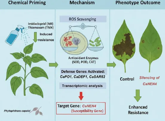 近日,河南农业大学园艺学院在《Molecular Plant Pathology》期刊上发表题为“Chemical Priming by Neonicotinoids Unveils CaNEN4 as a Susceptibility Gene Against Phytophthoracapsici in Pepper”的研究成果。河南农业大学园艺学院孟更副教授、硕士研究生王淑佳为论文共同第一作者,申亚文副教授、孙凯乐副教授为共同通讯作者。