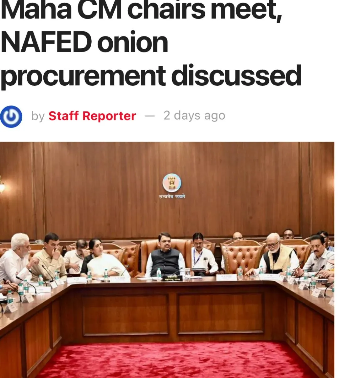 在孟买的议会大厦,首席部长德文德拉·法德纳维斯主持召开了一次关于洋葱危机的高级别会议,重点讨论了印度国家农业合作营销联合会在采购业务中的作用。