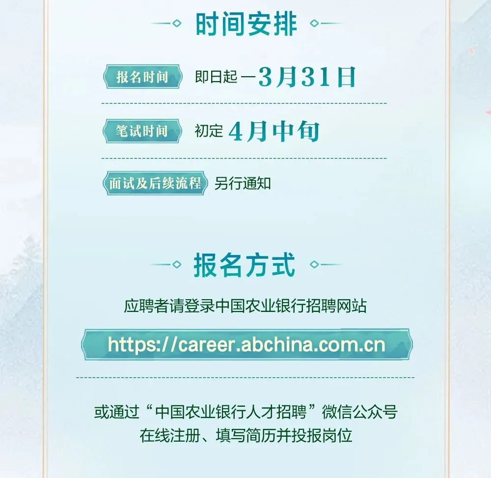 >招聘信息 | 【3月31日截止】中国农业银行广西分行2026年度春季招聘正式启动!