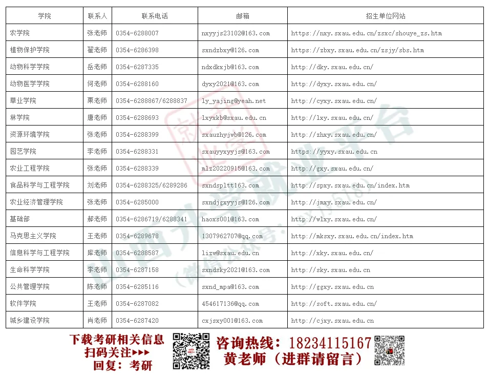 各院(部)联系方式:https://grs.sxau.edu.cn/info/1076/4433.htm