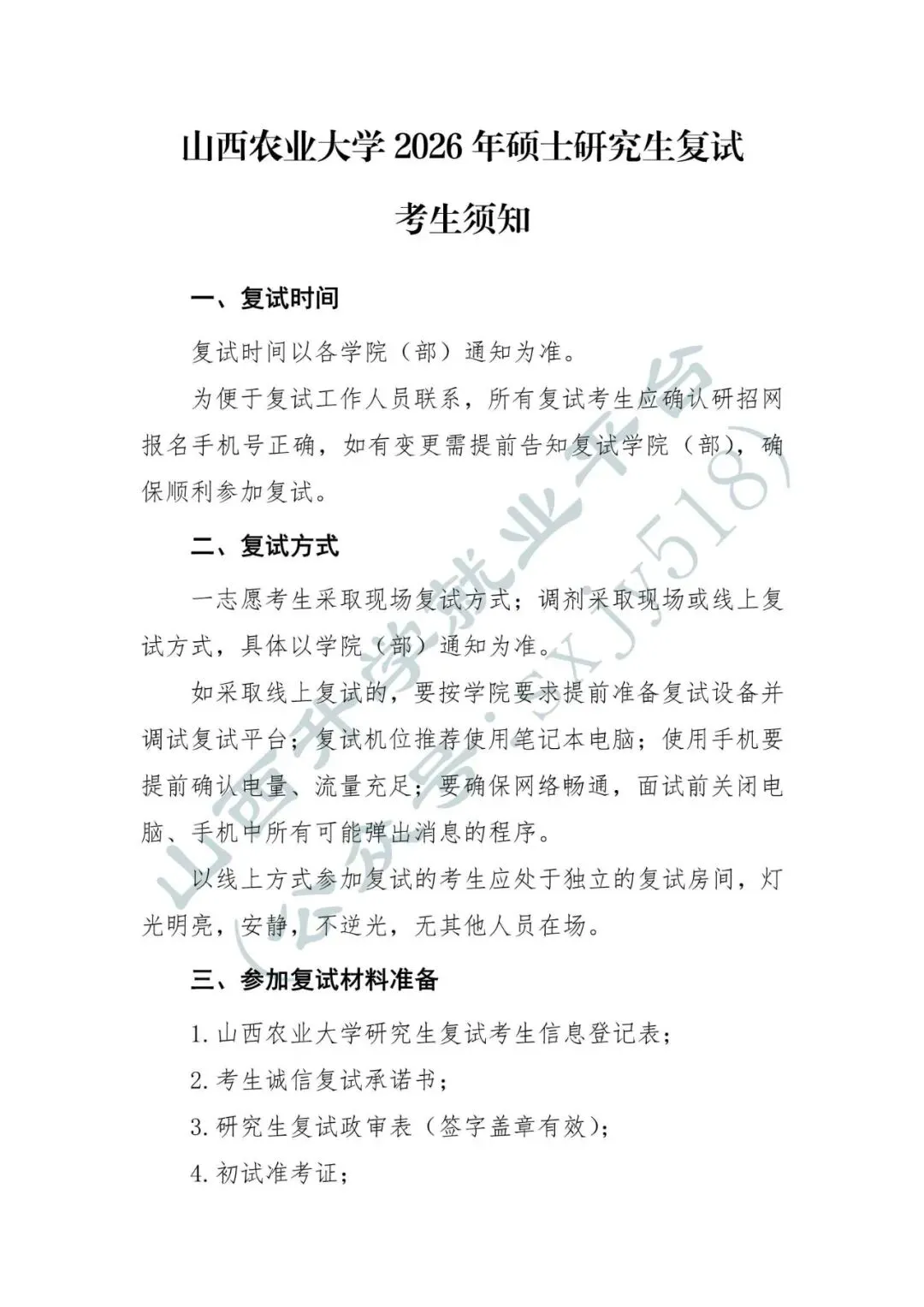 山西农业大学关于做好2026年硕士研究生复试录取工作的通知