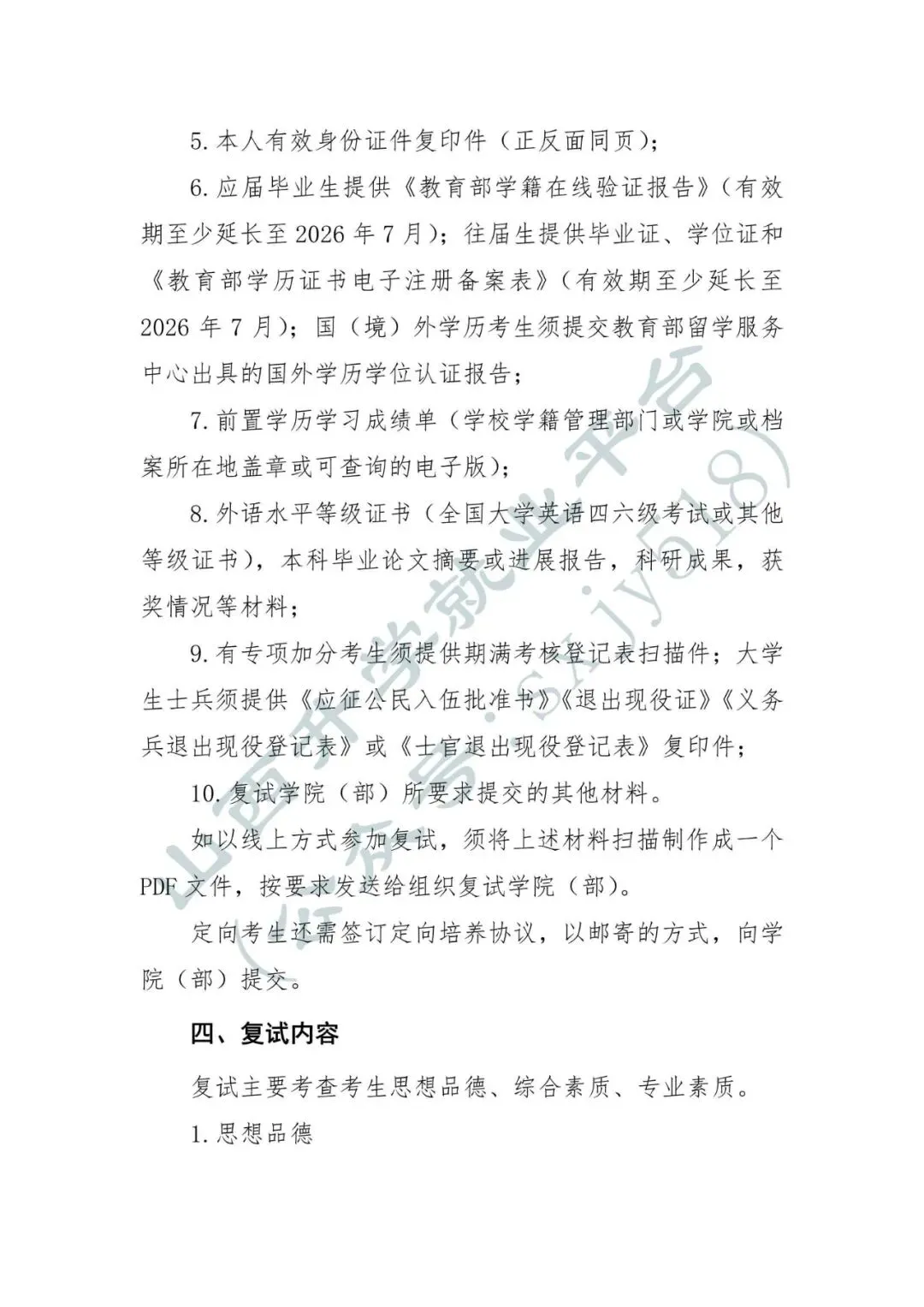 关于符合2026年全国硕士研究生招生考试享受初试加分政策考生提供证明材料的通知