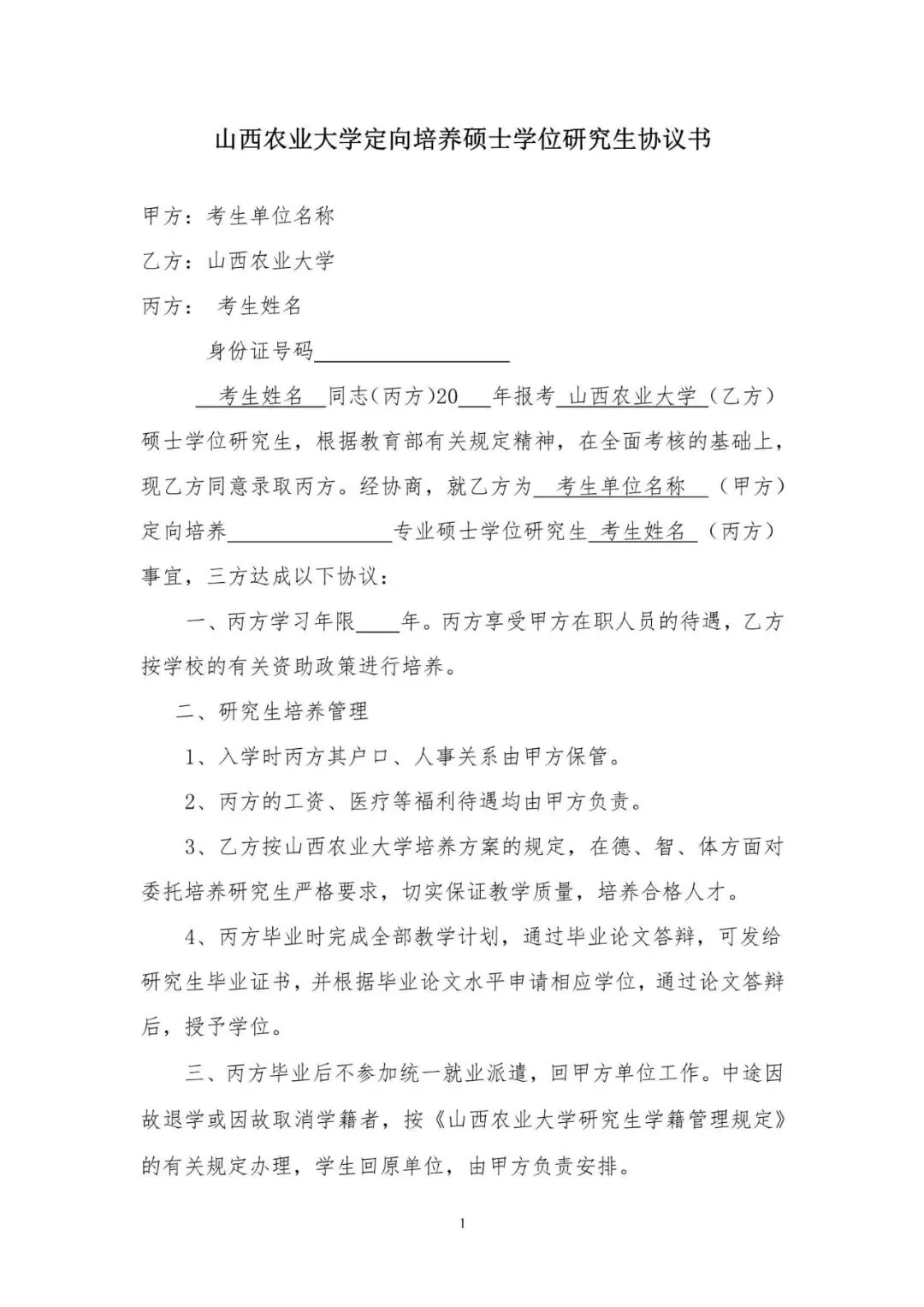 1.山西农业大学研究生复试考生信息登记表;