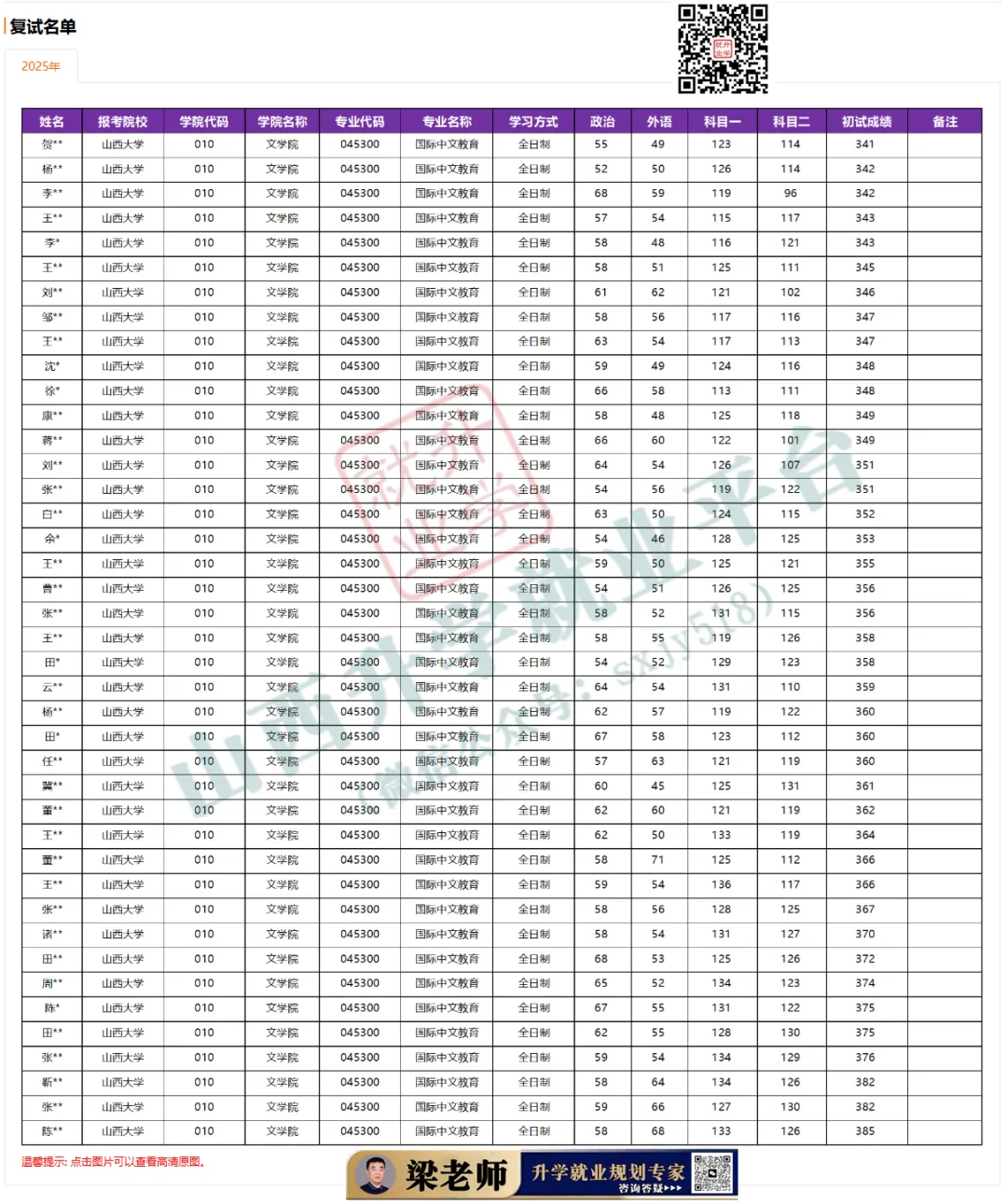 山西大学2025年一志愿分数线、调剂分数线