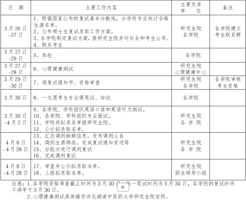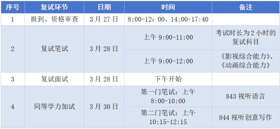 学校复试工作进度安排如下:
