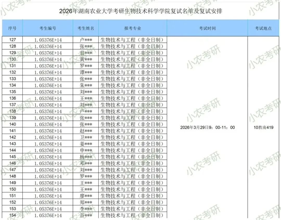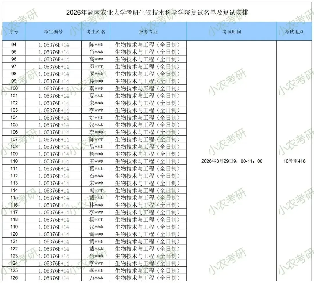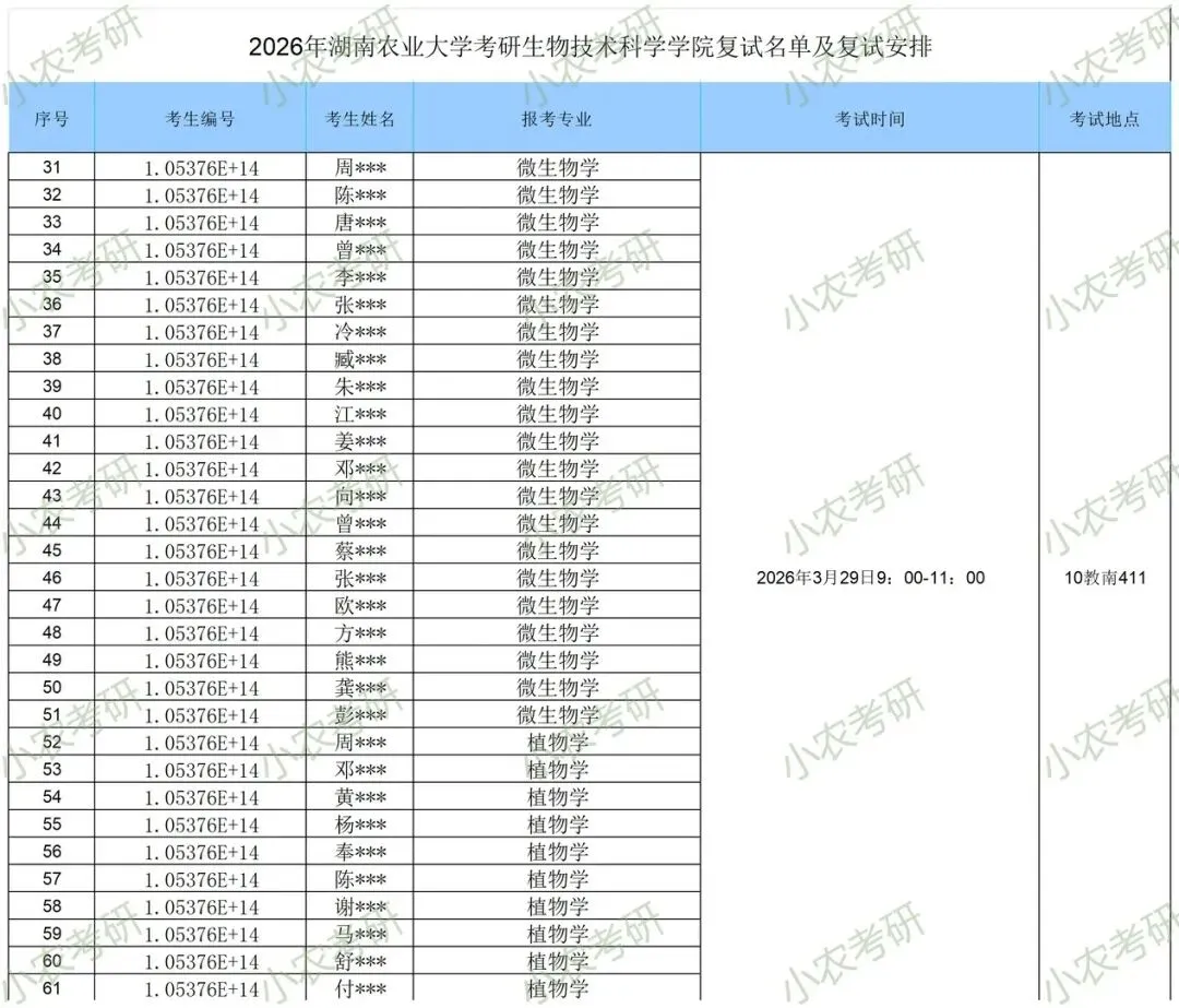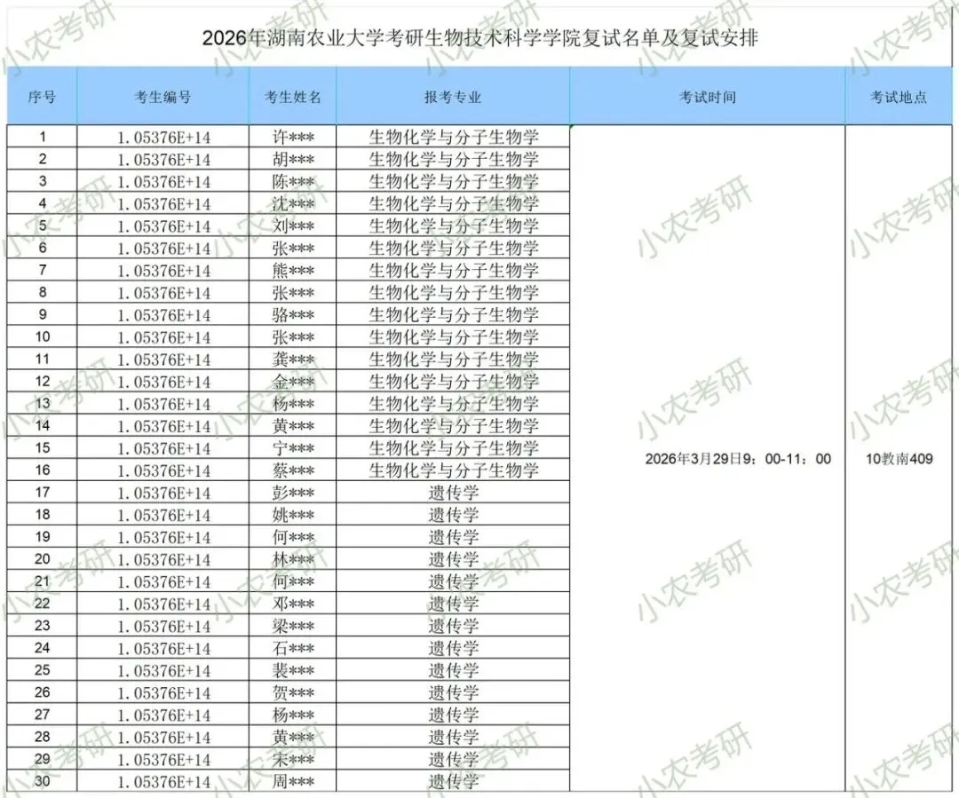 湖南农业大学生物科学技术学院2026年硕士研究生复试录取工作方案