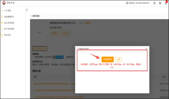 登录后,在我的桌面查看通知与公告,按格式要求选择照片文件,点击上传新华社照片。