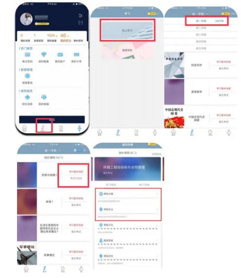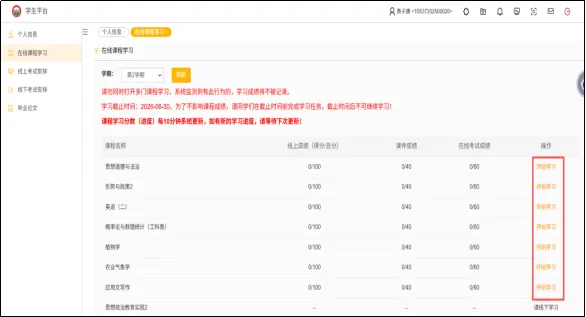 (1)选择对应的学期和课程,点击“开始学习”(见下图 )