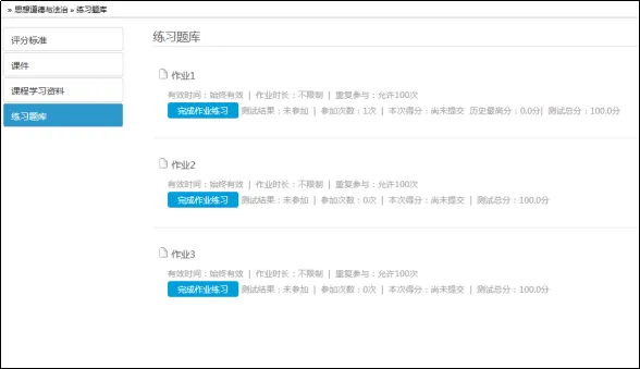 (2)查看评分标准。点击“评分标准”,查看各项学习内容所占比重及分值。