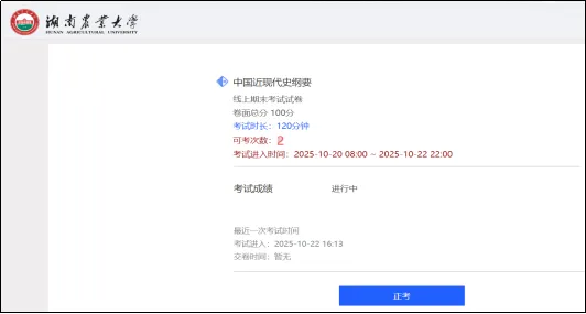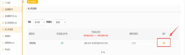 (1)返回主界面,点击“线上考试安排”,选择对应学期和考试科目,点击“查看”,即可进入考试界面。