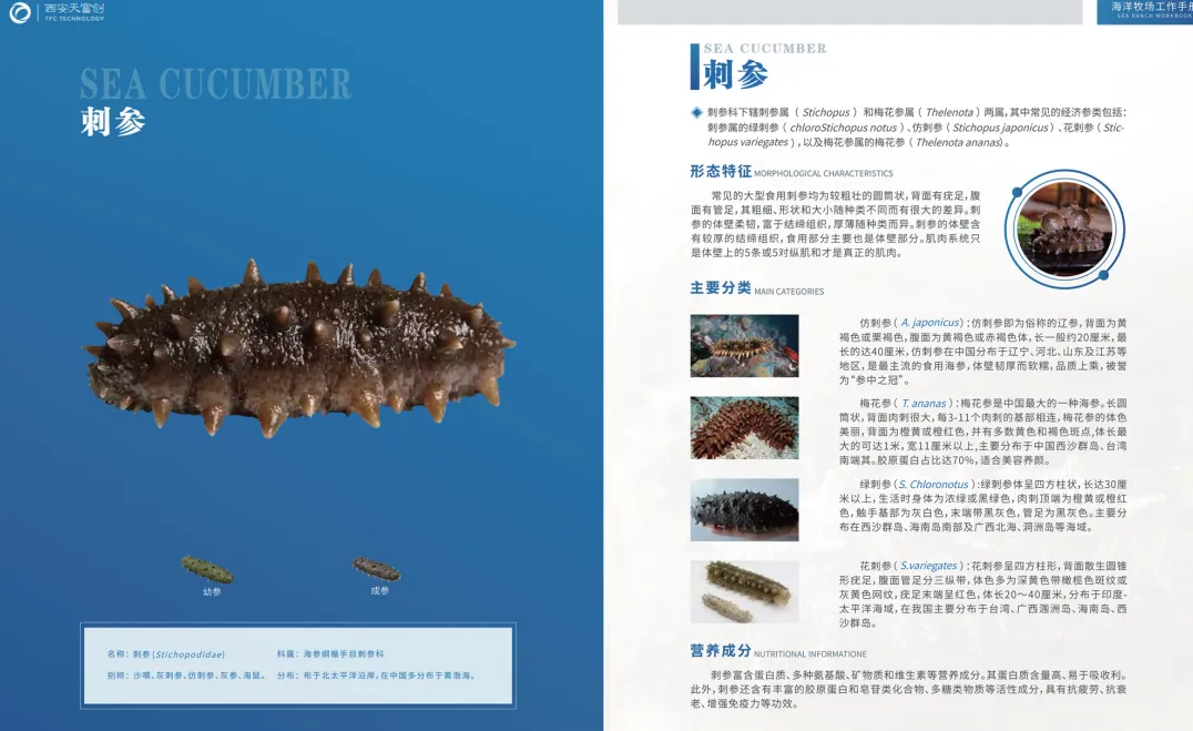 养殖类型:三文鱼、鲈鱼、对虾、梭子蟹、扇贝、刺参。